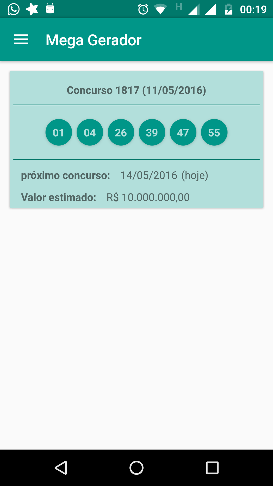ATENÇÃO! Este aplicativo não realiza apostas e não possui vínculo com a Caixa Econômica Federal do Brasil. Todos os resultados são obtidos do site oficial das Loterias Caixa do Brasil