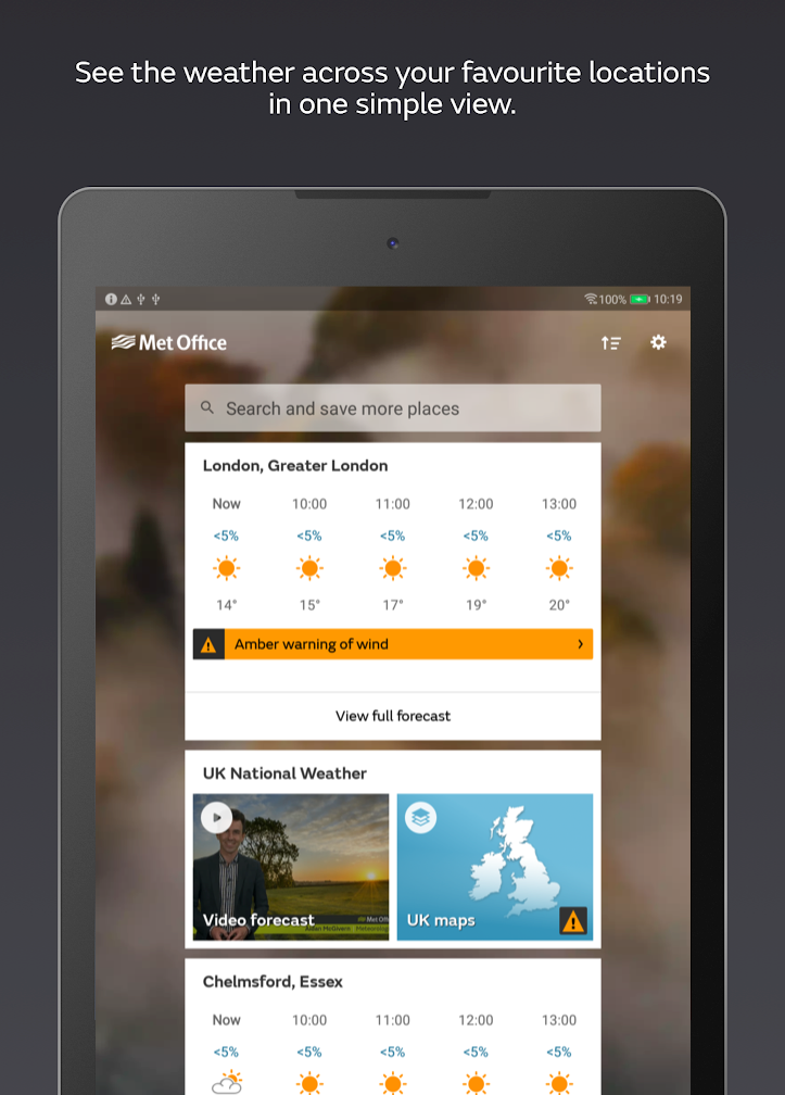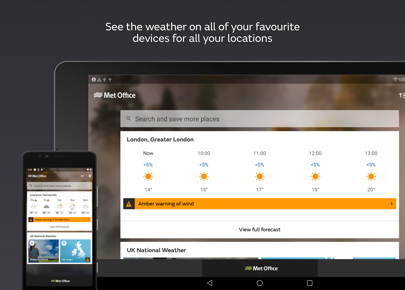 Stay one step ahead and access the latest forecasts with Met Office Weather.