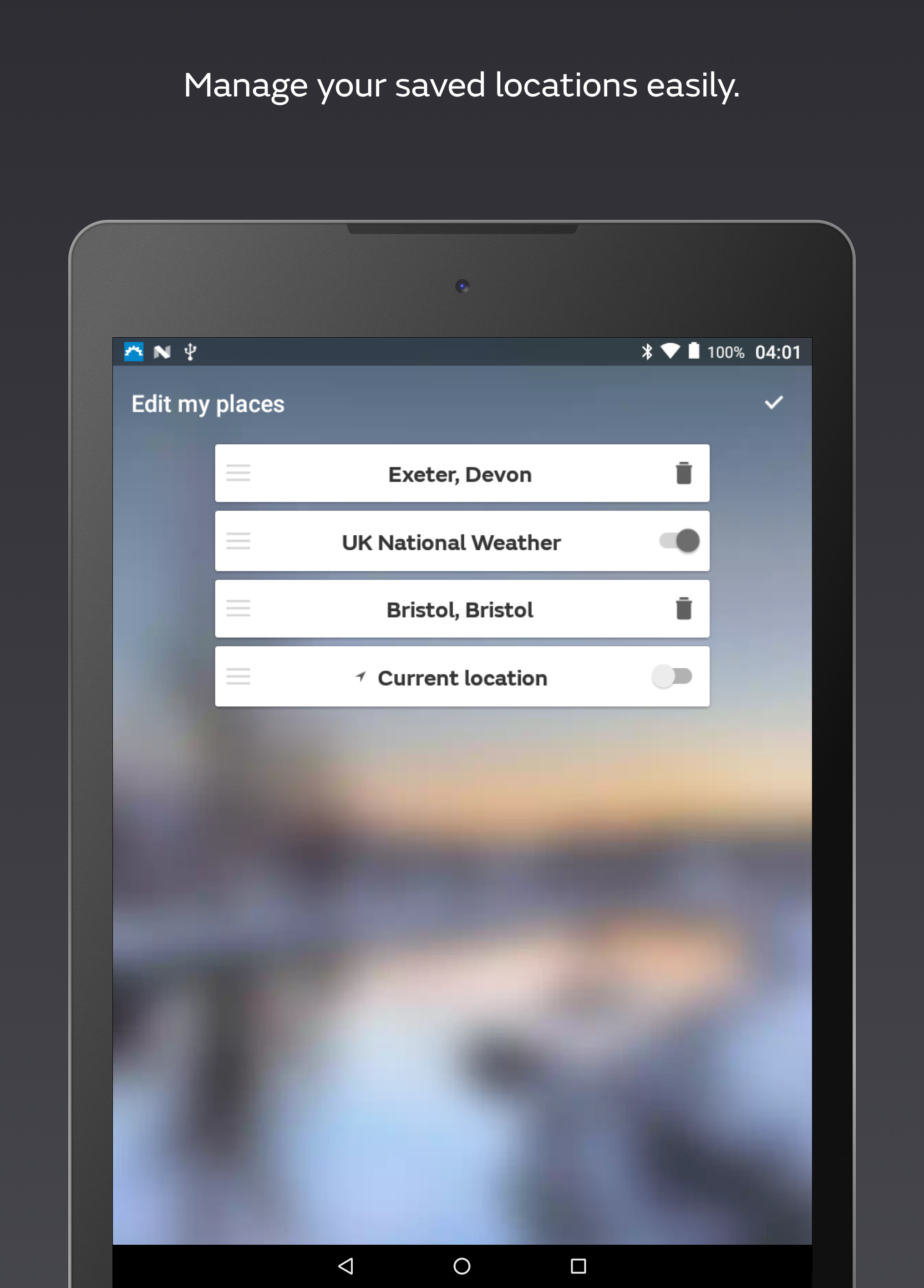 * Quick switch between daily and hourly forecasts for your favourite locations
