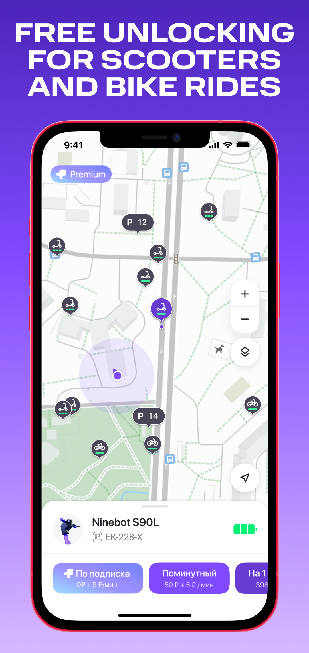 Get a free start renting e-scooters and e-bike, save up and spend cashback on trips and all other Premium features. The service is available to subscribers of all operators.