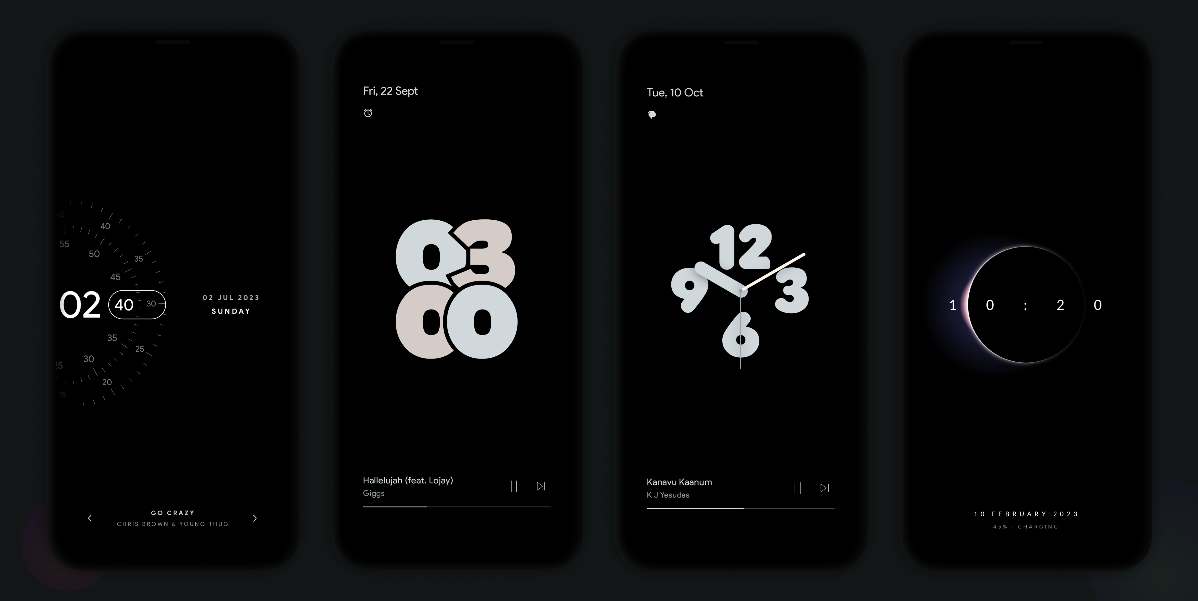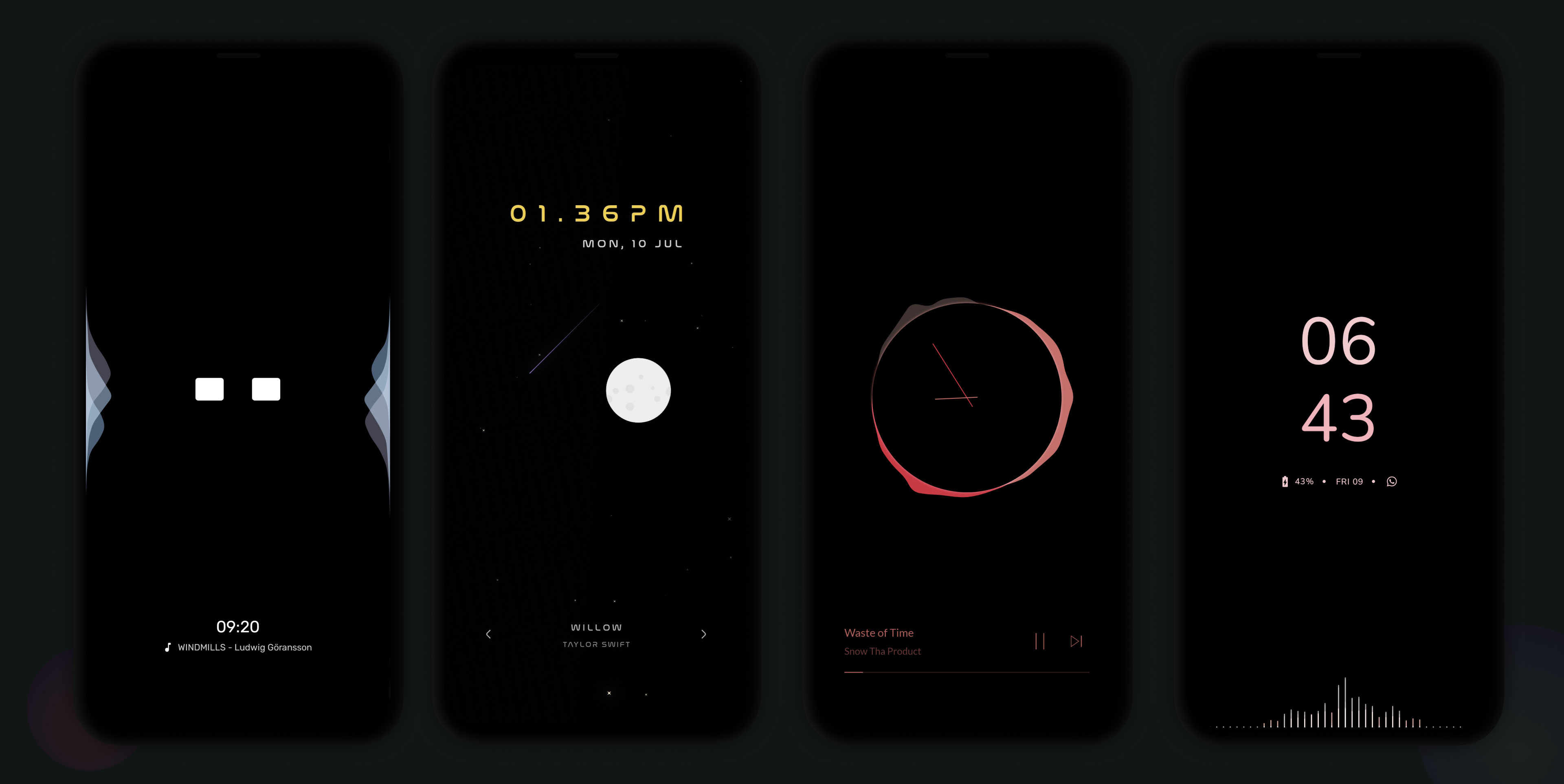 We have growing set of AODs which can be used independently or along with our visualizers. Always on Displays can be extensively customised with our inbuilt editor. Even you can set your own AOD backgrounds.