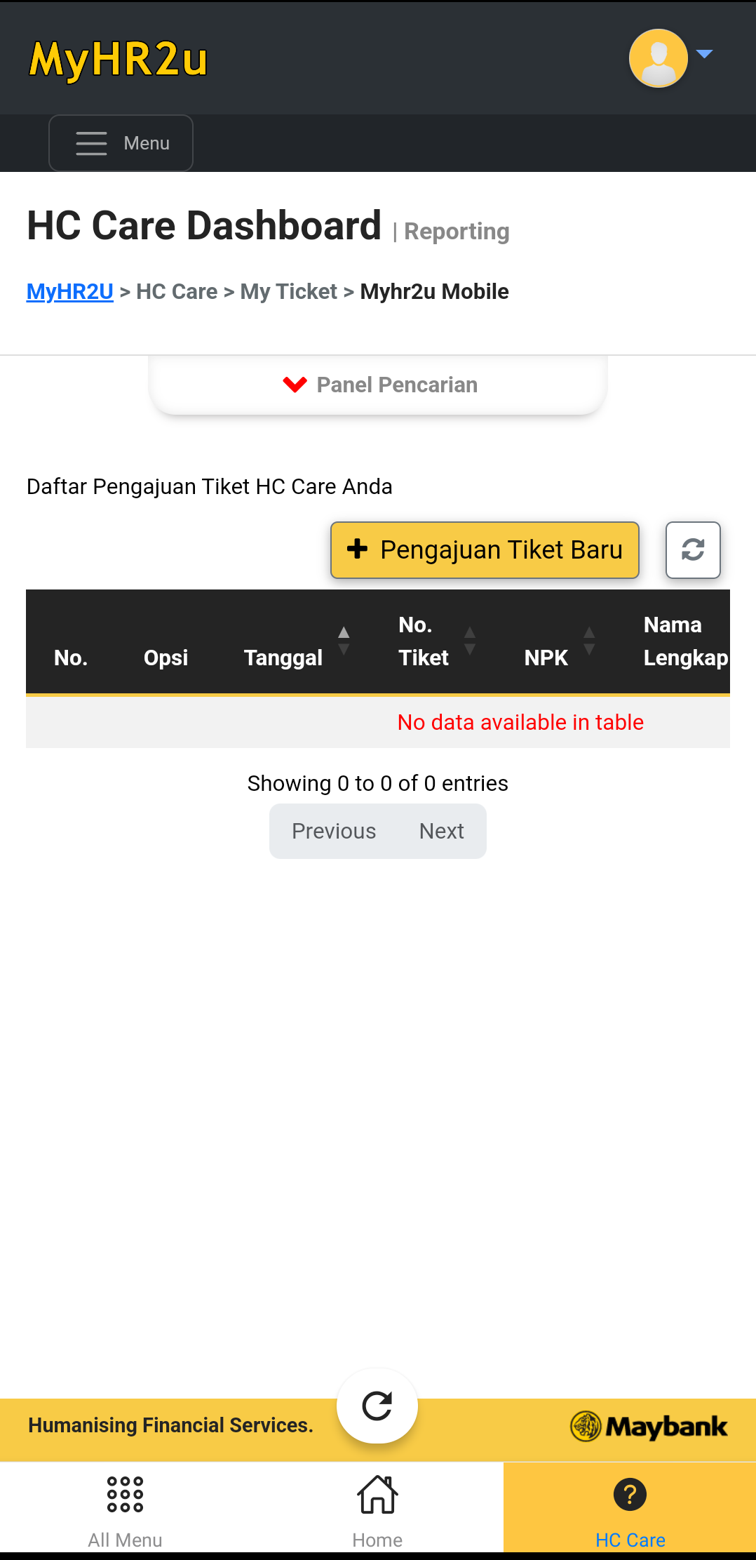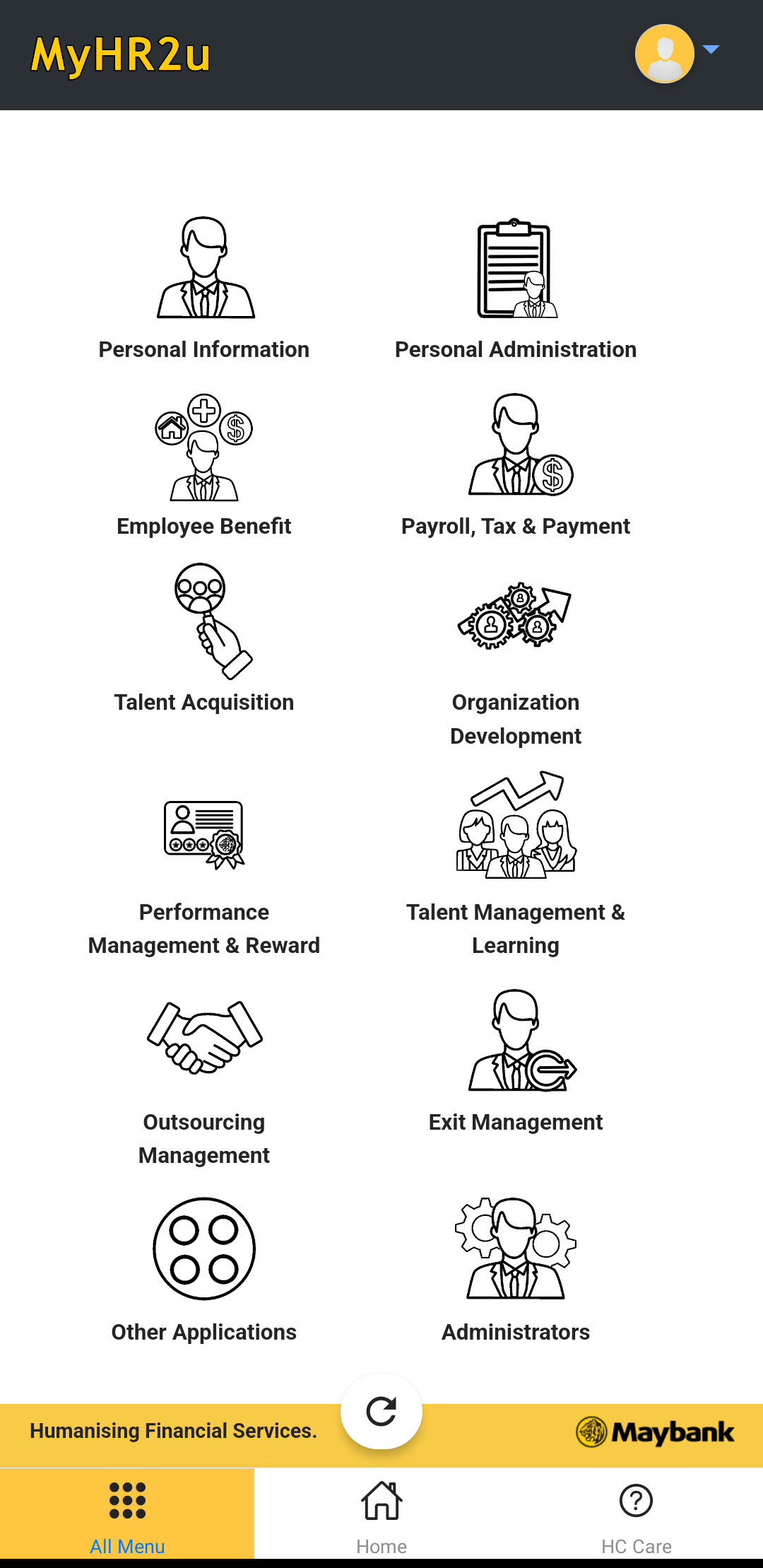 MyHR2u is a Front-end Access System & Tracking application that is intended to provide complete and easily accessible information for each Maybank Indonesia employee.