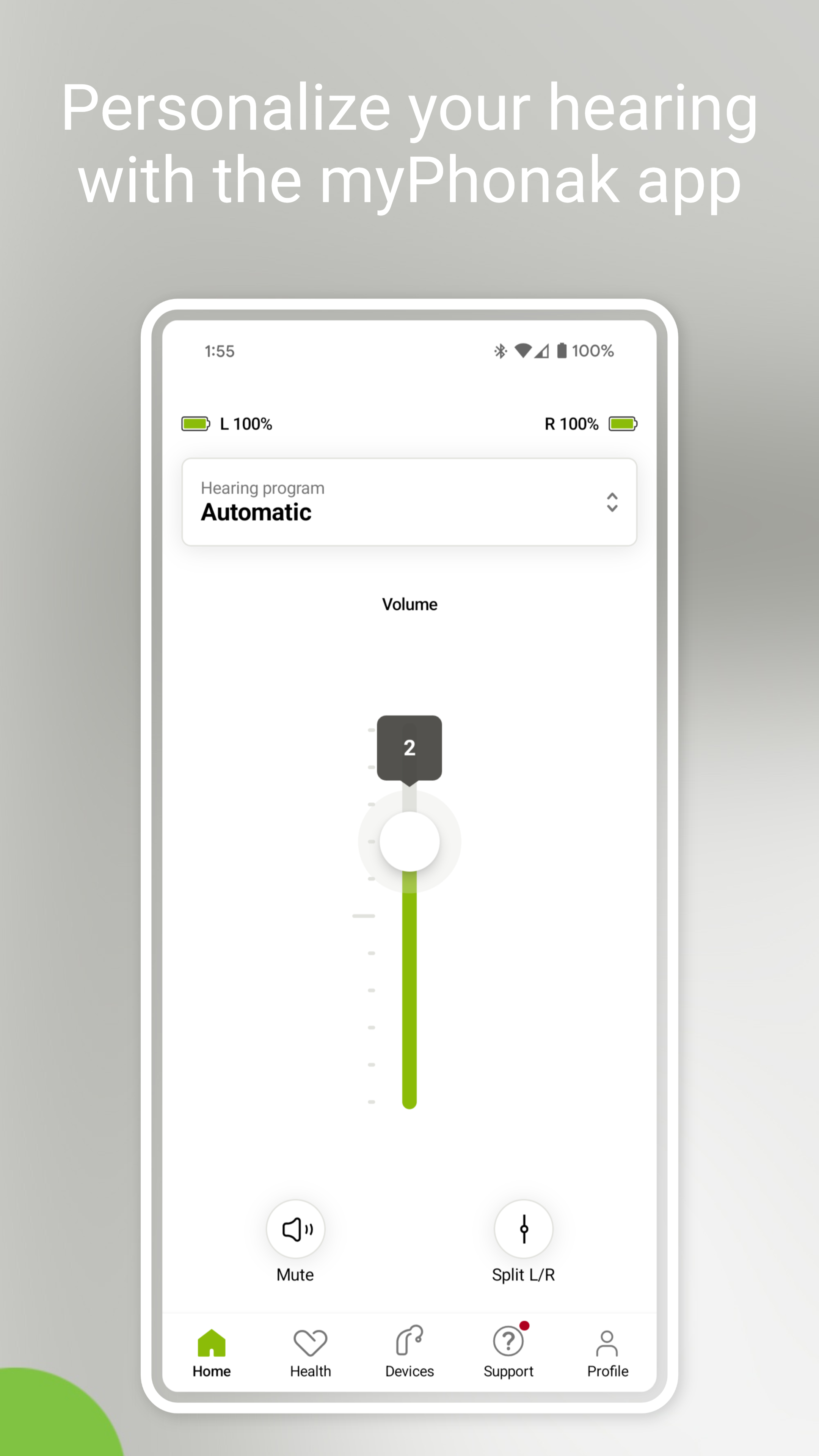 The new myPhonak comes with improved functionality and a new design to make your hearing experience as seamless and as tailored to your needs as possible. myPhonak provides you access to enhanced hearing controls and personalization options for your Phonak hearing aid(s) in addition to tracking your health data*.