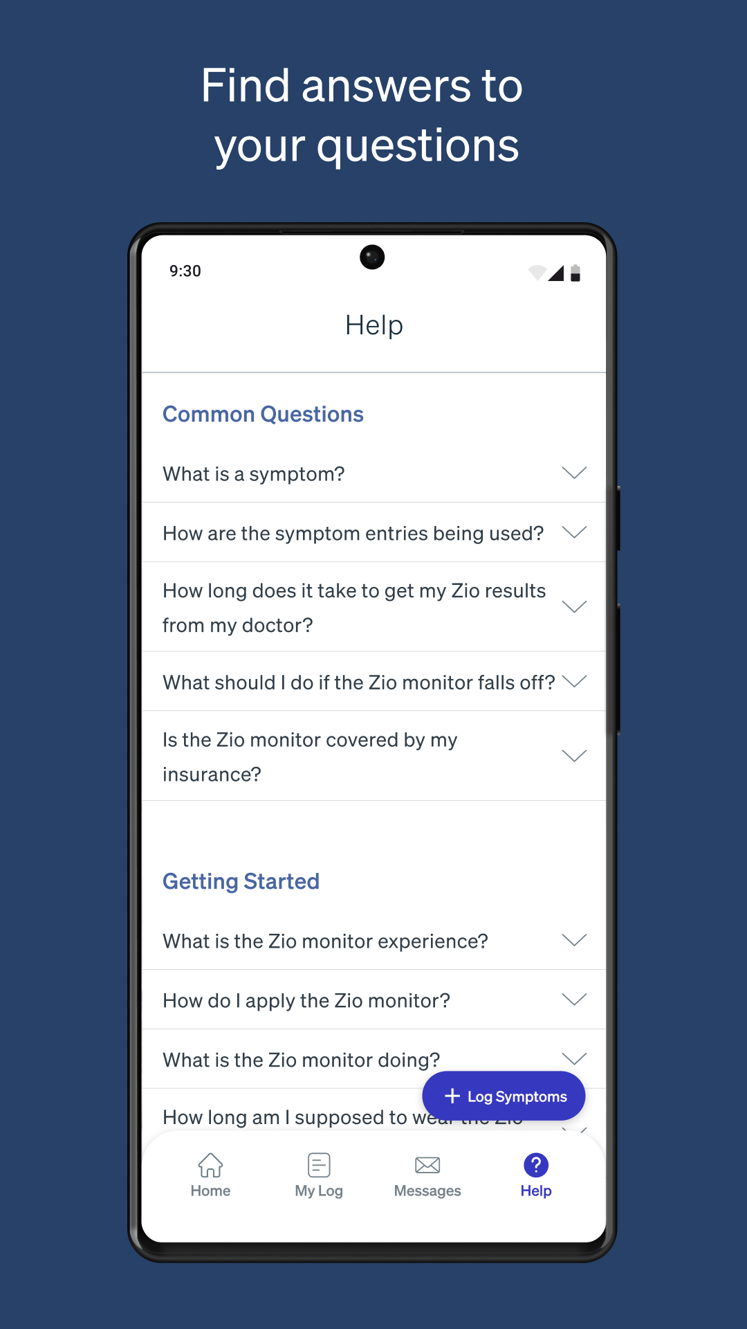 Log your symptoms in the MyZio app — the perfect companion to the Zio monitor!
