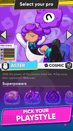 - 8 Pros, each with a thematic soundtrack and unique playstyle.