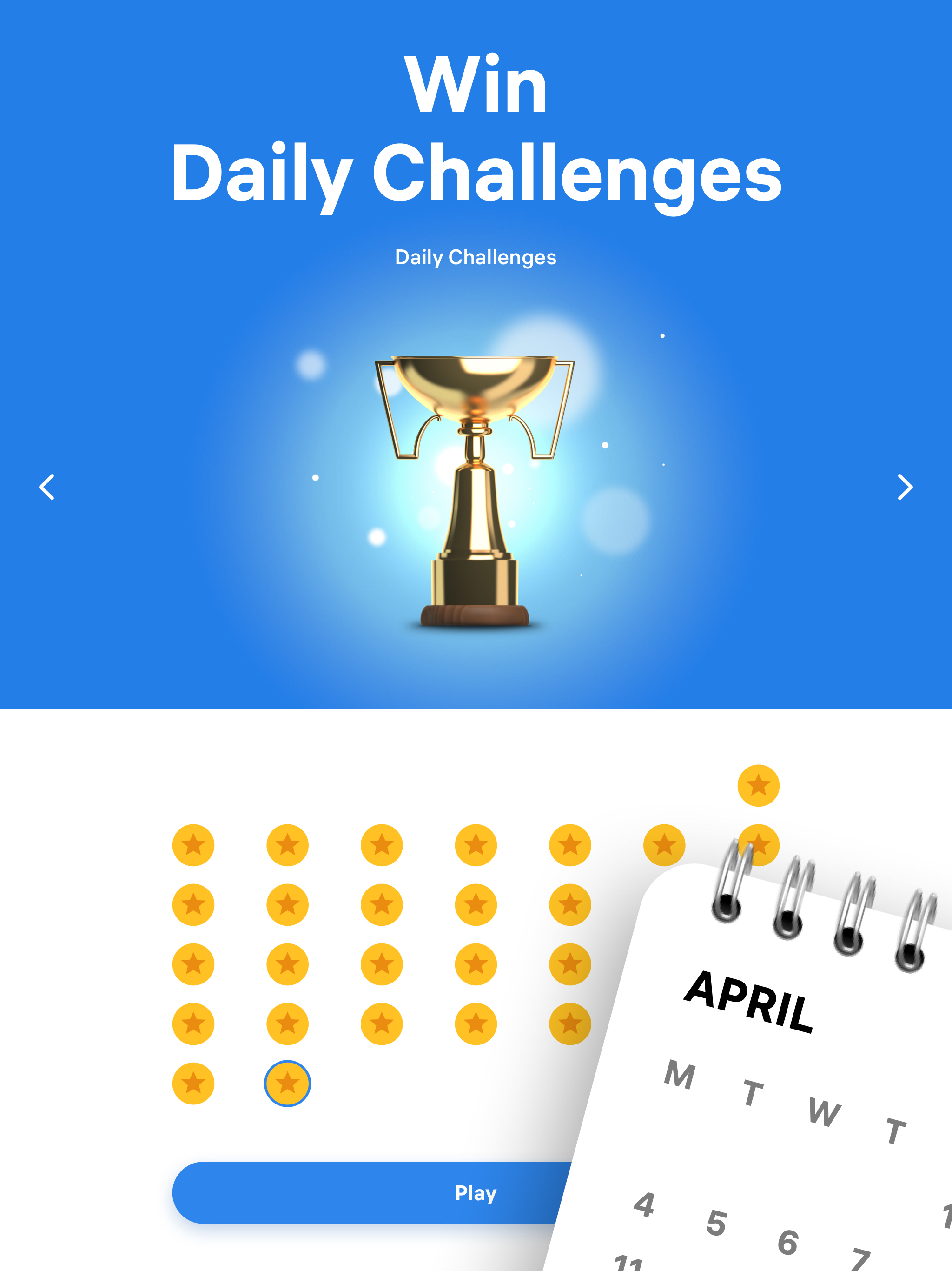 • Daily Challenges. Play every day, complete daily challenges for a given month, and win unique trophies