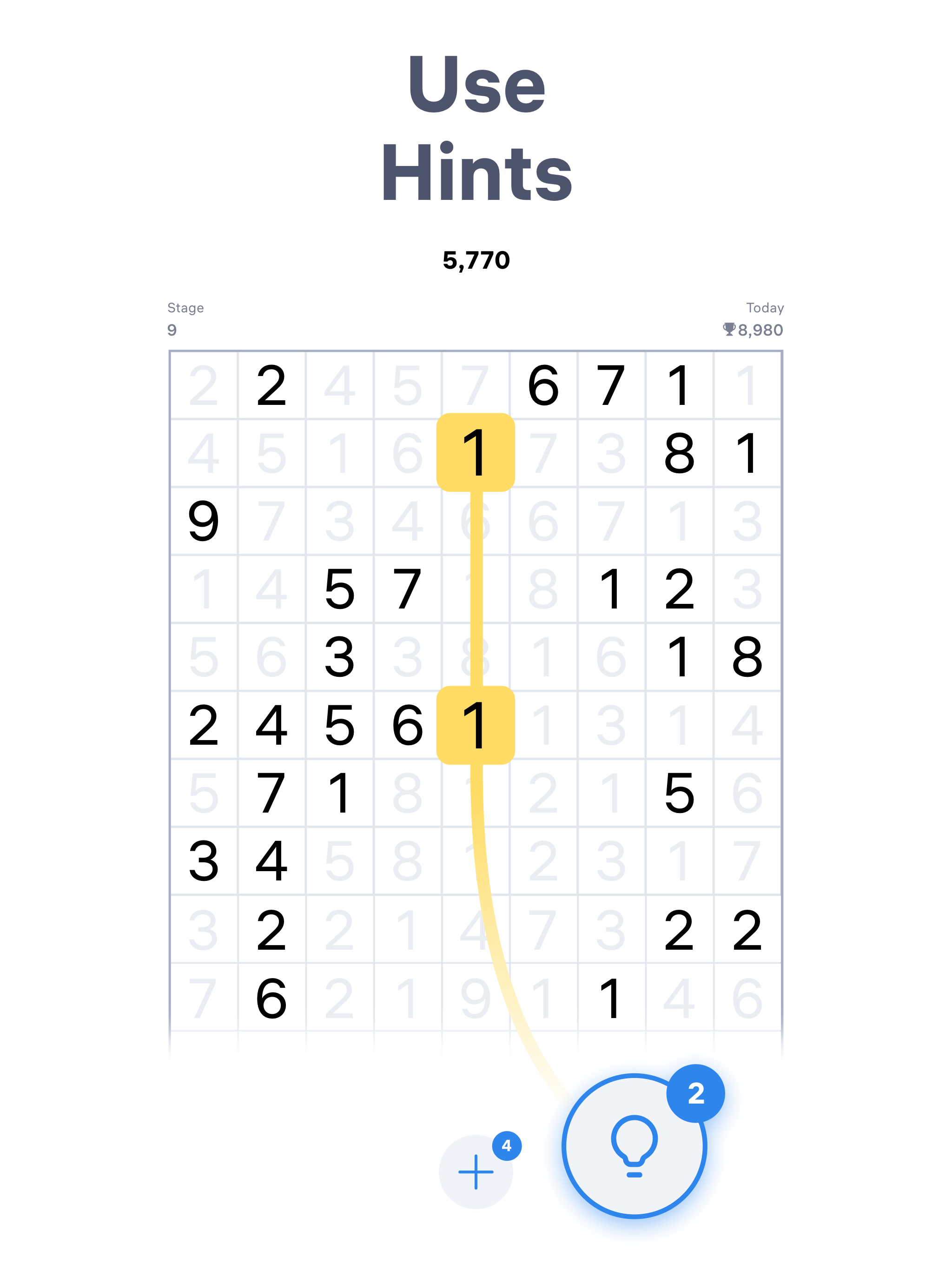 • Speed up your progress with Hints if you are stuck in this math game.