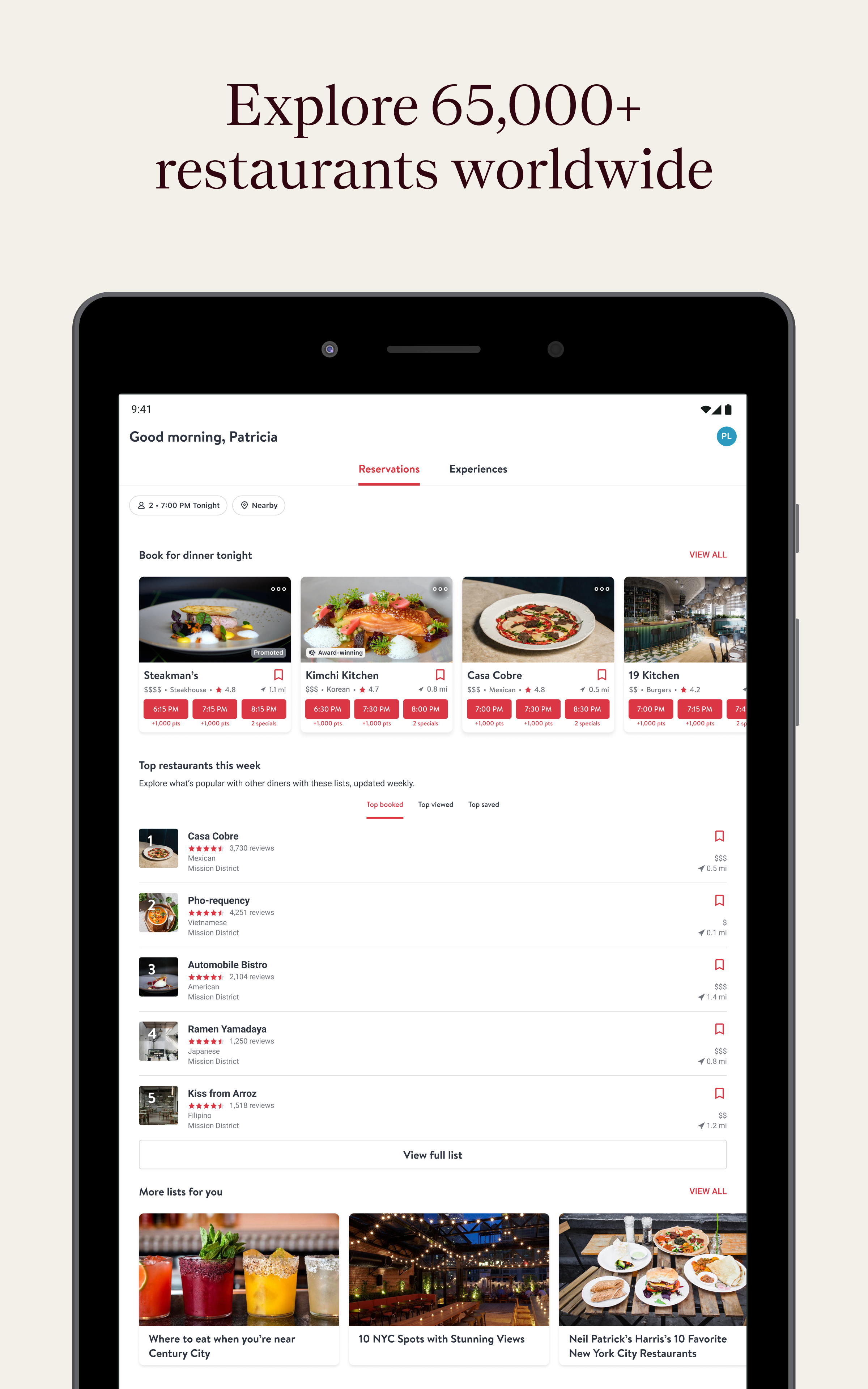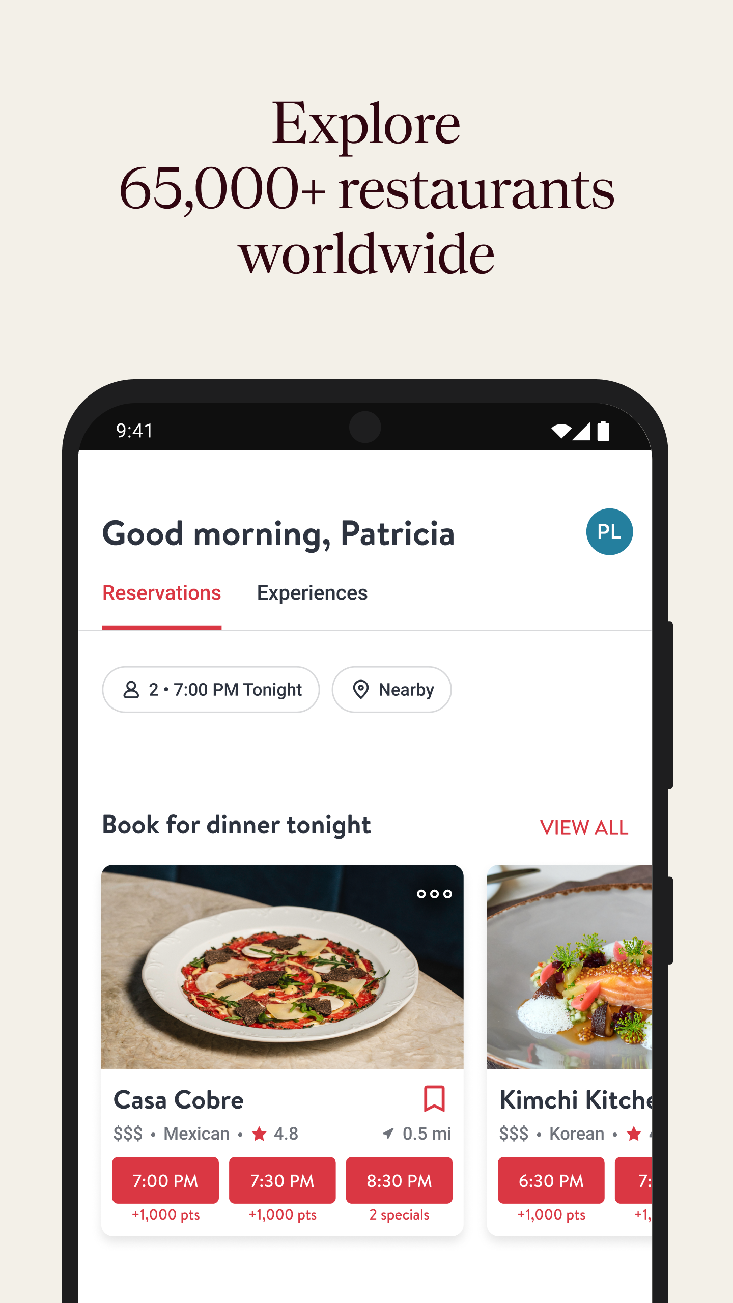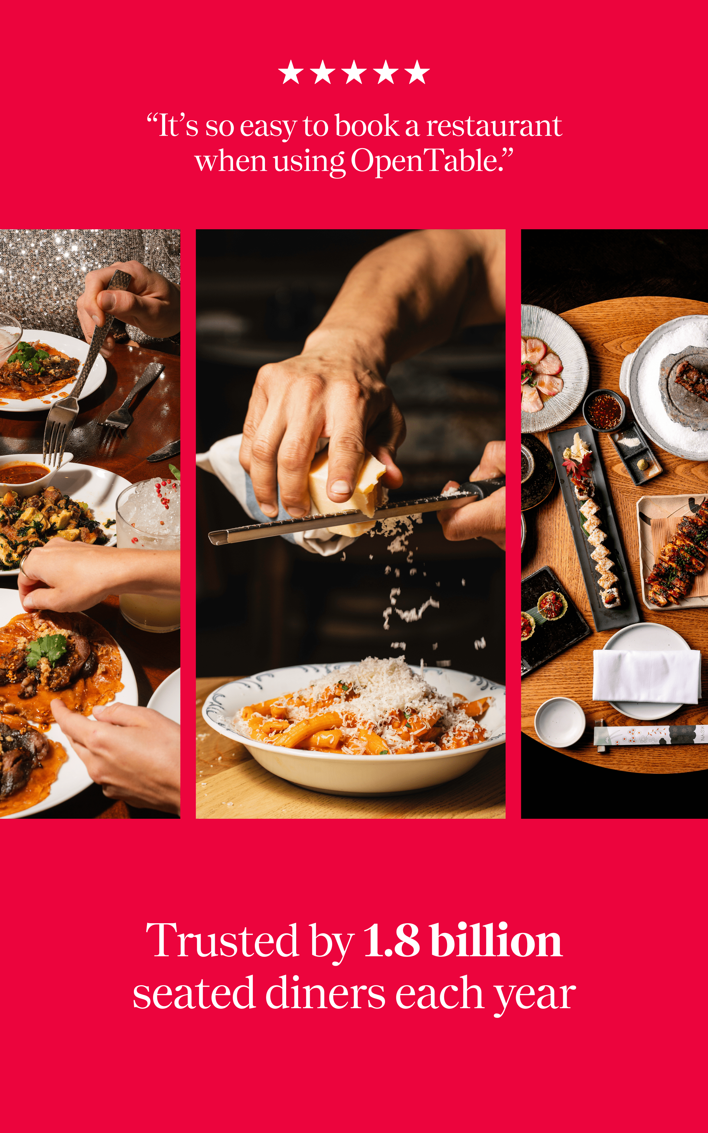 Every great meal starts with OpenTable. OpenTable lets you discover great restaurants where you are. Download the app to explore our network of 65,000+ restaurants worldwide and find the perfect restaurant no matter where life takes you.