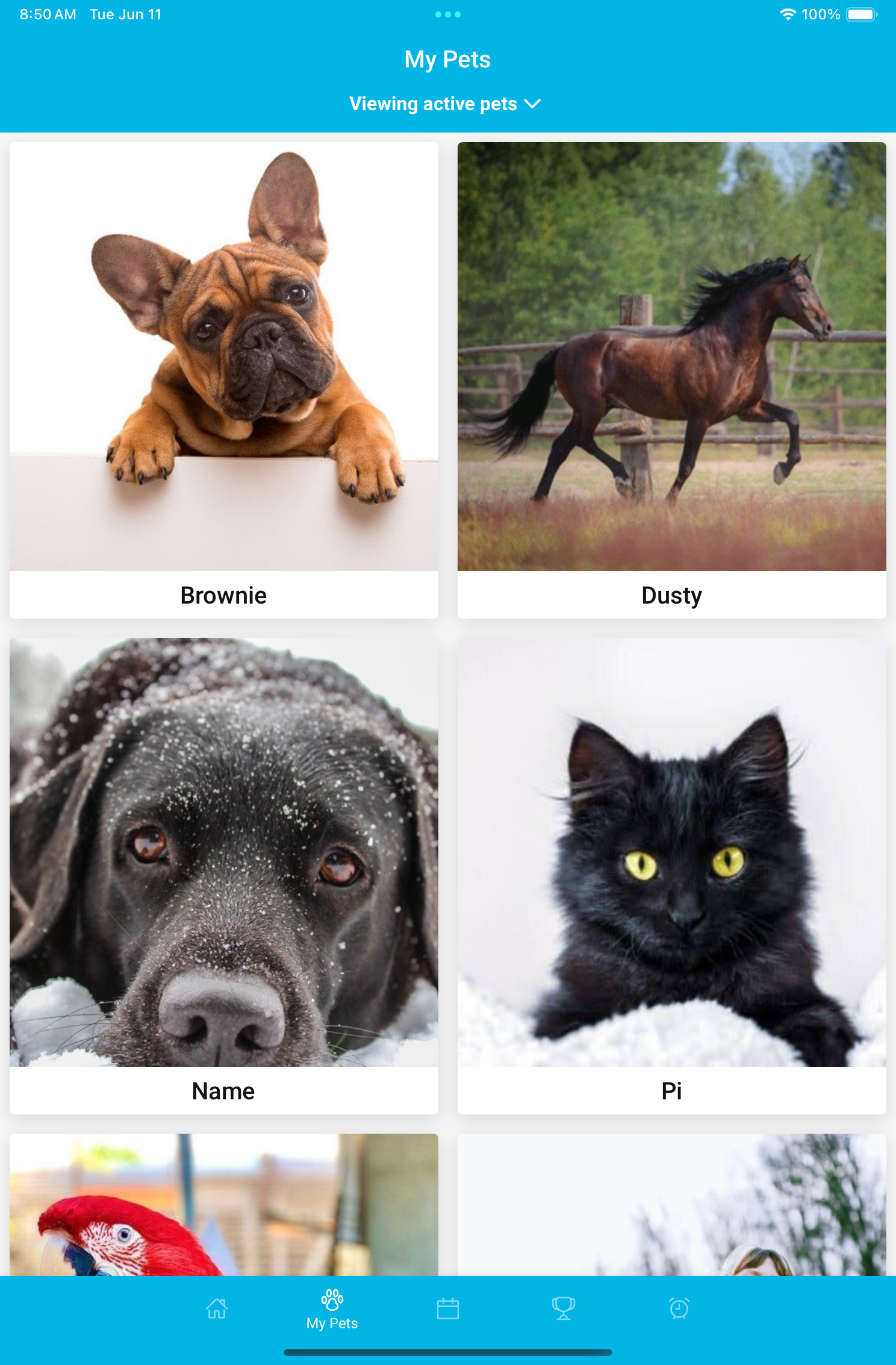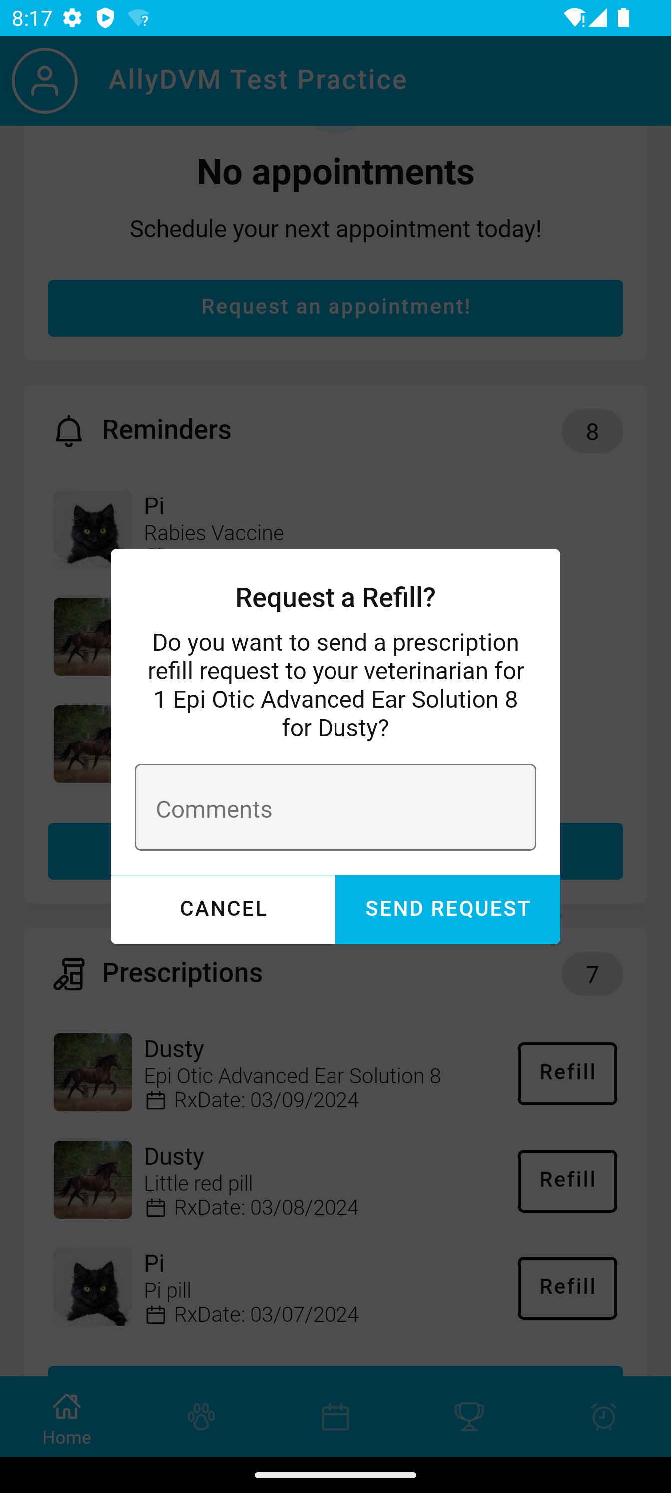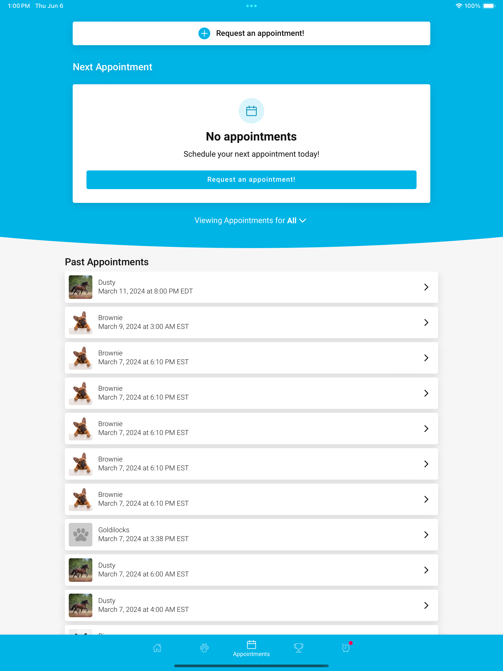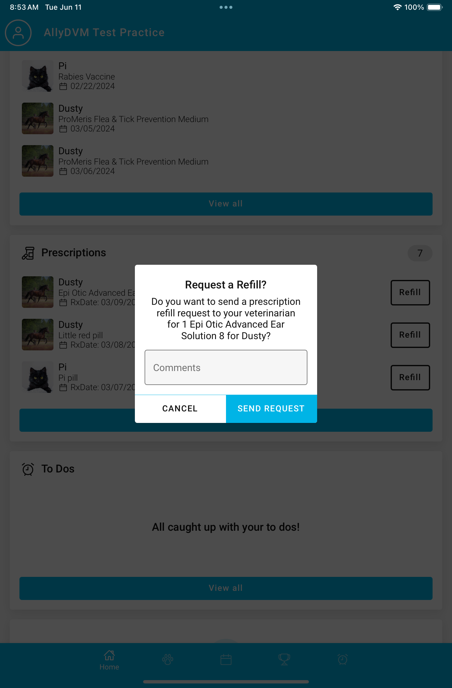 Access your pet’s information, request appointments, share their Pet ID, & more!