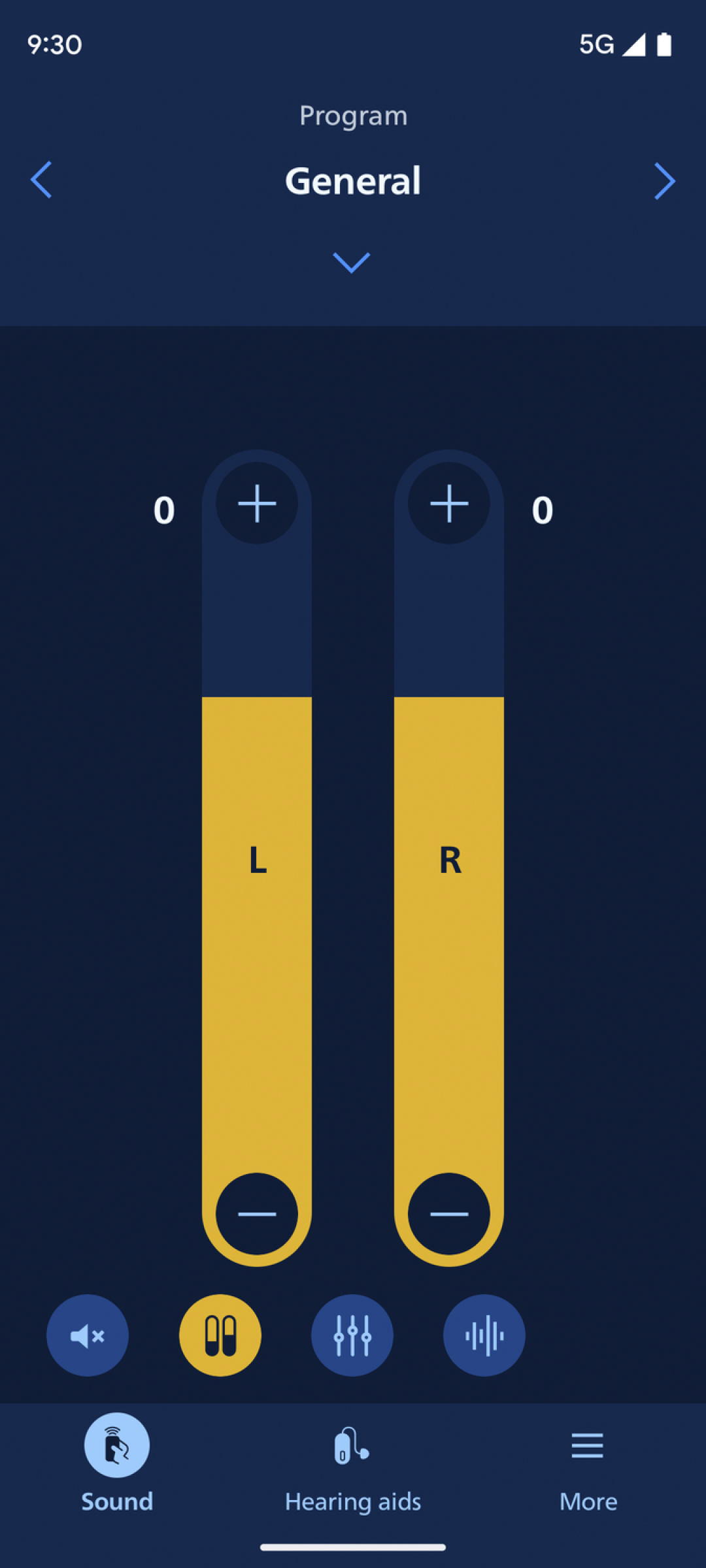 • Adjust sound volume for each hearing aid together or separately