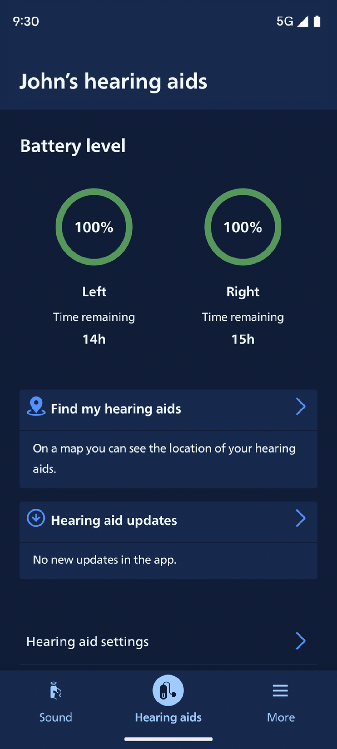 • Find your hearing aids if lost (requires location services always turned on)