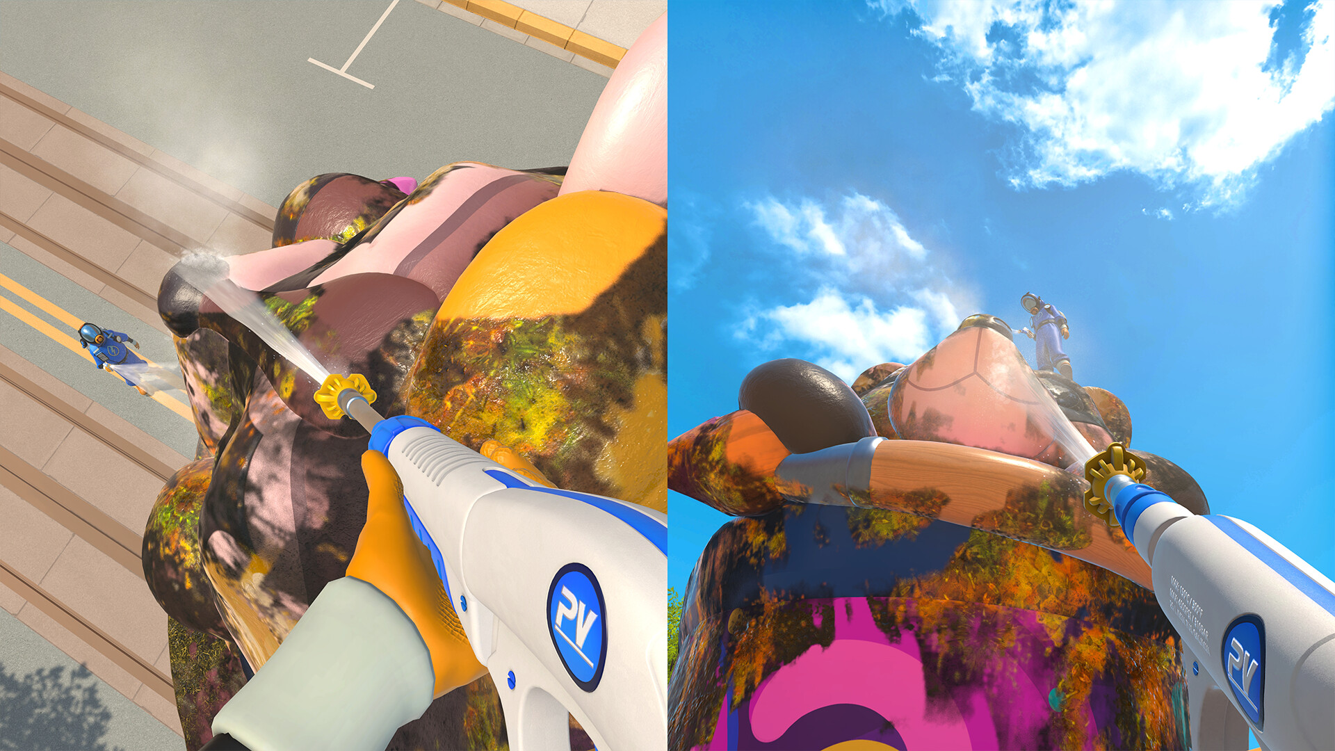 The game offers a wide variety of new environments to clean, including imaginative and colorful locations such as Sponge Valley, Power Falls, and Lubri City. These diverse settings provide unique challenges, from everyday urban spots to quirky structures like parade floats and a house shaped like a teapot. Each location is richly detailed, encouraging players to methodically uncover and wash away layers of dirt and grime.