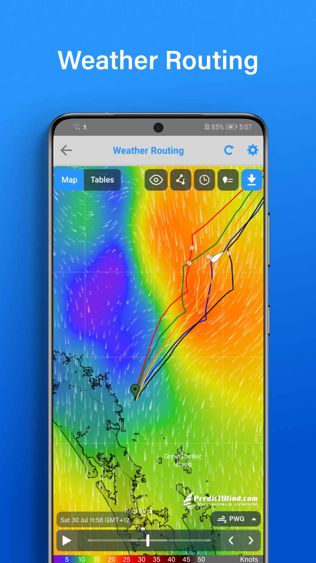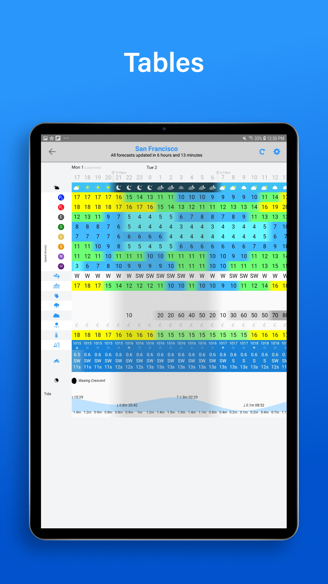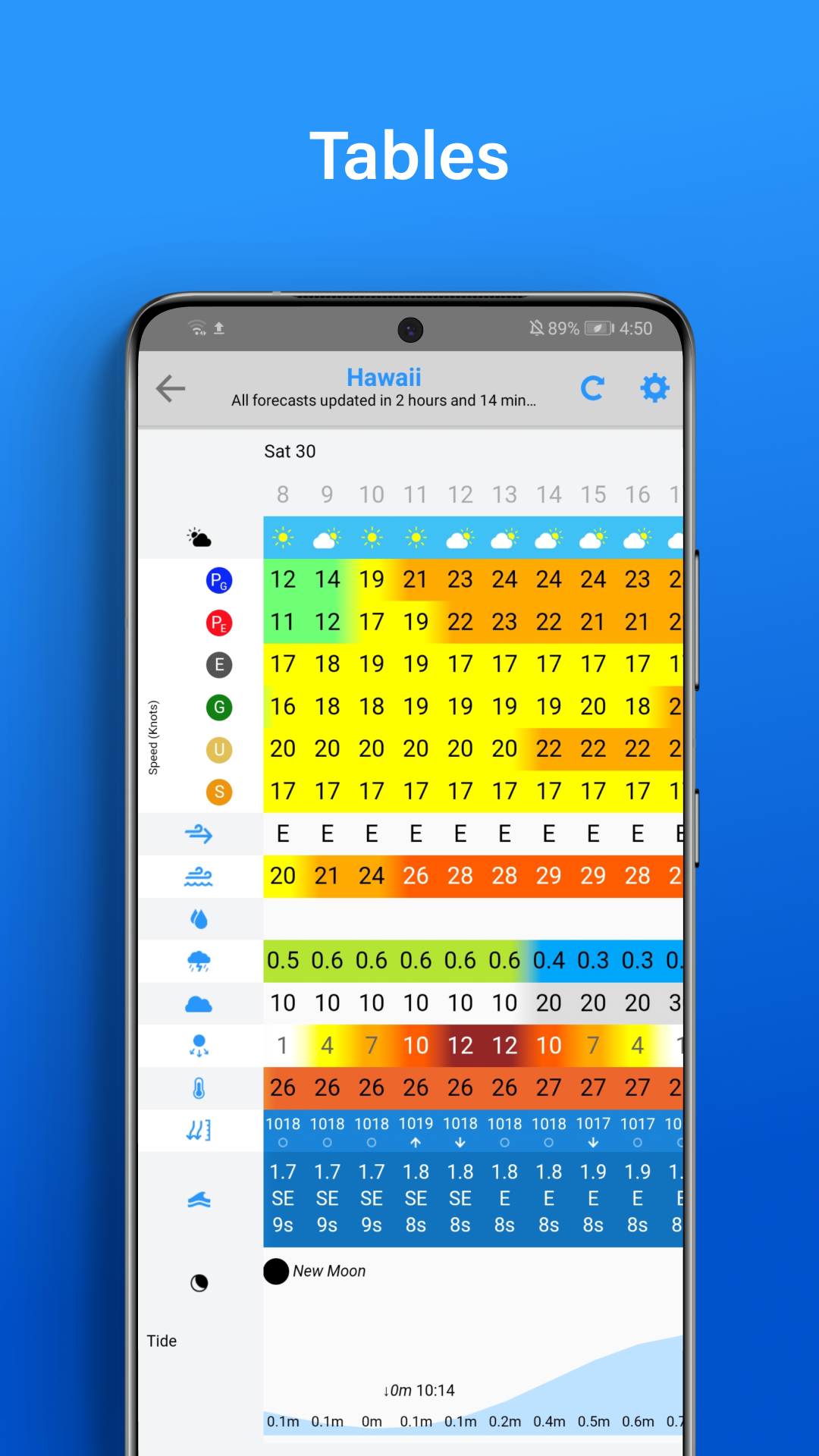 - Tables: The ultimate dashboard for detailed analysis of Wind, Wave, Rain and more.