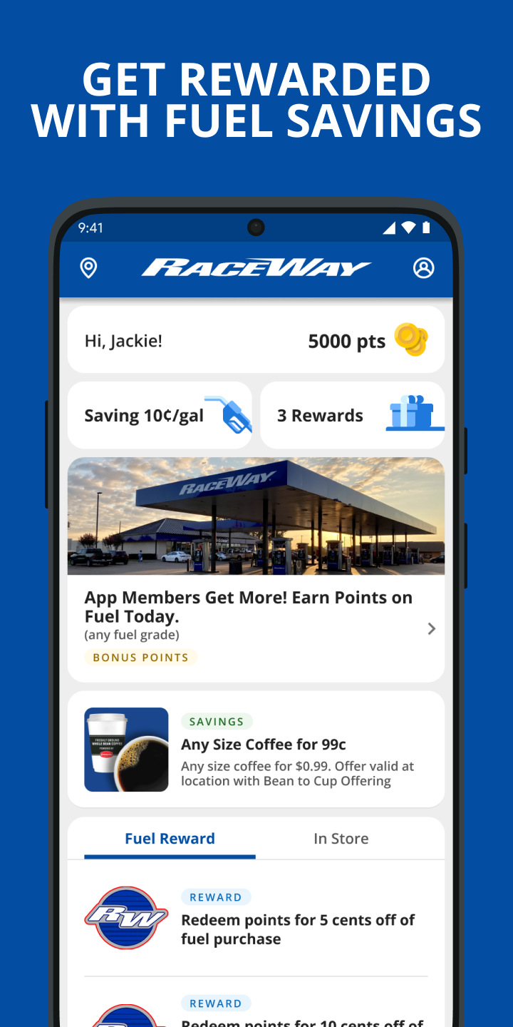 Get rewarded every time you fuel up, maximize your savings when you shop in store , track purchases, and easily find nearby locations—all in one app.