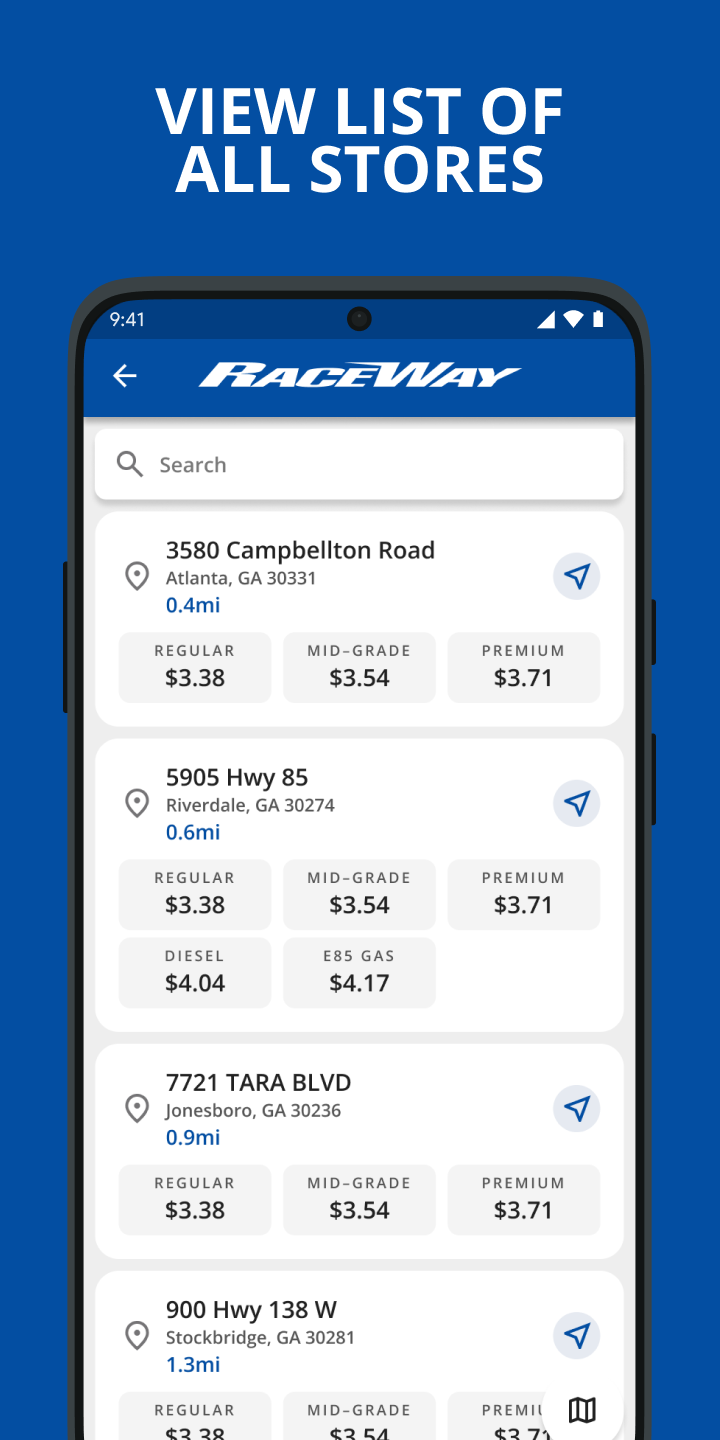 • Find Nearby Stores – Locate RaceWay stores near you.