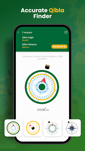 Qibla Compass offers to accurately determine the Qibla direction from anywhere in the world. Using GPS technology, the Qibla Finder feature calculates the precise Qibla direction relative to your current location, ensuring you face the correct way during prayer times.
