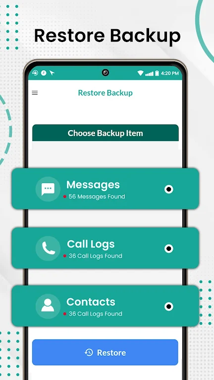 Never lose important data! Securely Backup and Restore Your SMS, Call Logs, and Contacts with Ease!