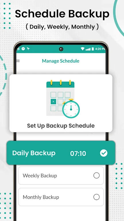 Schedule SMS, and Contacts backup so you can rest assured that your data is always protected, even if you forget to take backup manually.