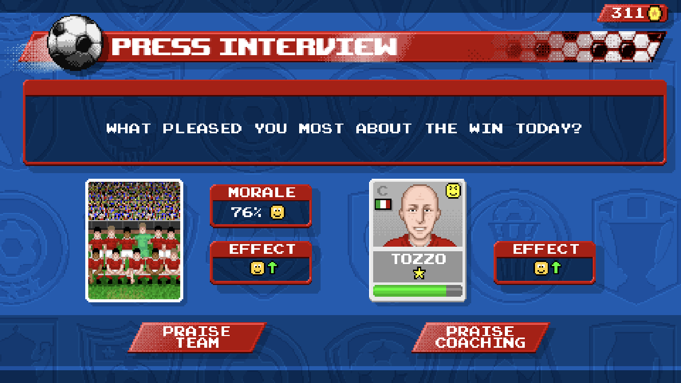 With graphics inspired by the most beloved football games of 16-bit era and the accuracy of modern touchscreen controls, you'll be slotting away goal after goal with pixel-perfect precision. Choose a team from the world's favourite leagues and recruit the superstars, professionals and hotheads who will lead you to victory - then take full control on the pitch and make every touch count!