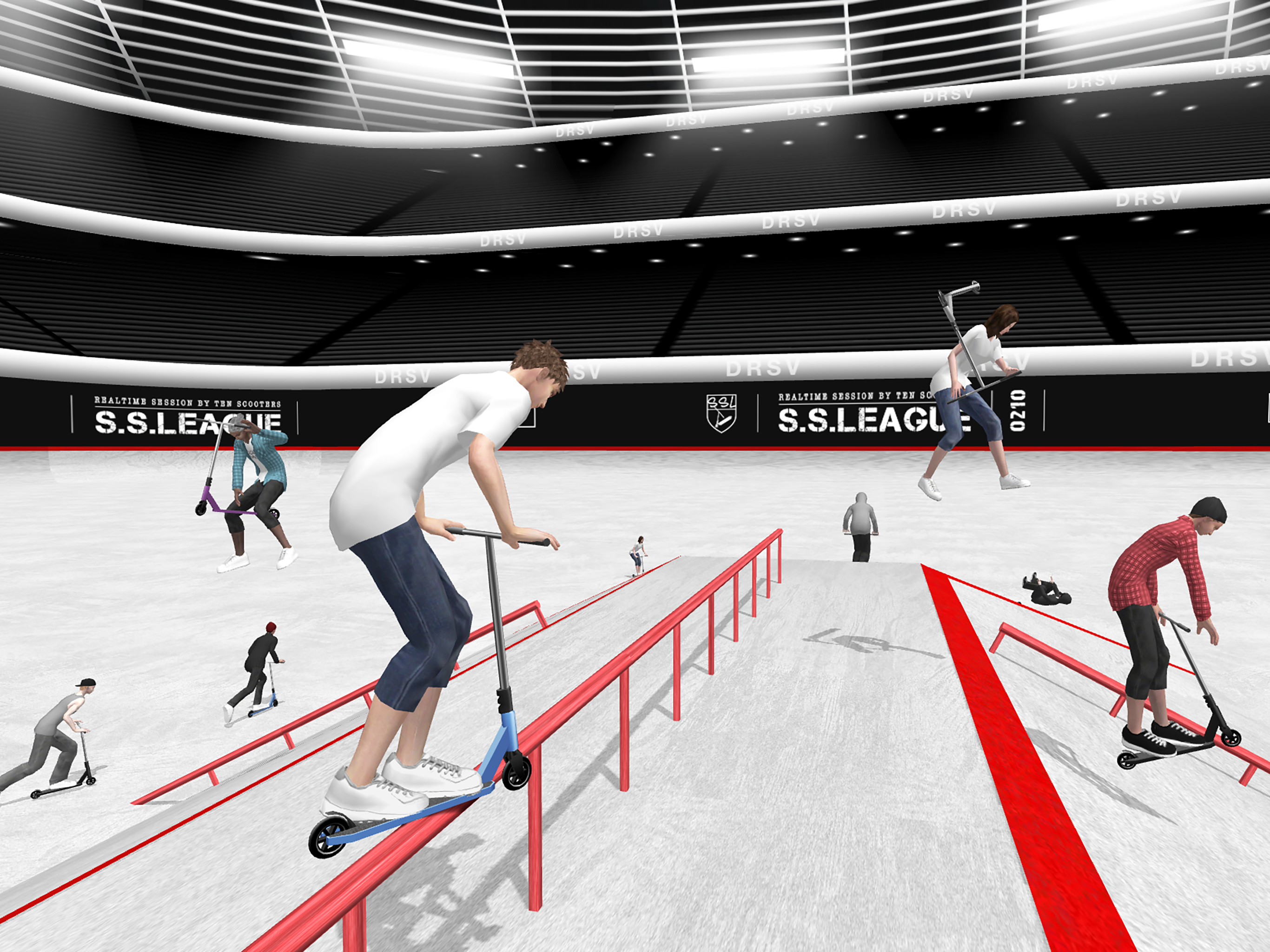 ・Multiplayer online battle with up to 10 scooters.