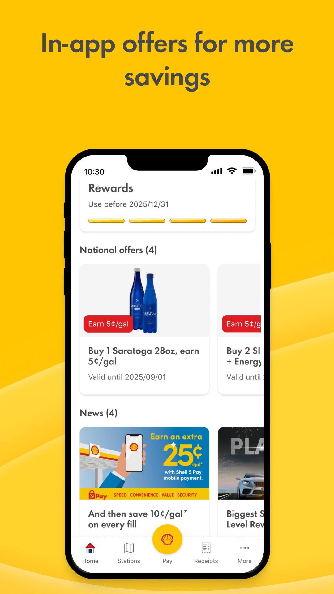 • New to the Shell App? You can earn a one-time 25¢/gal savings by downloading the app and completing your first Shell Pay & Save fuels purchase.