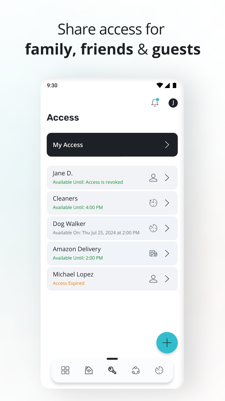 - Grant unique, time-bound access codes to family, friends, and service providers