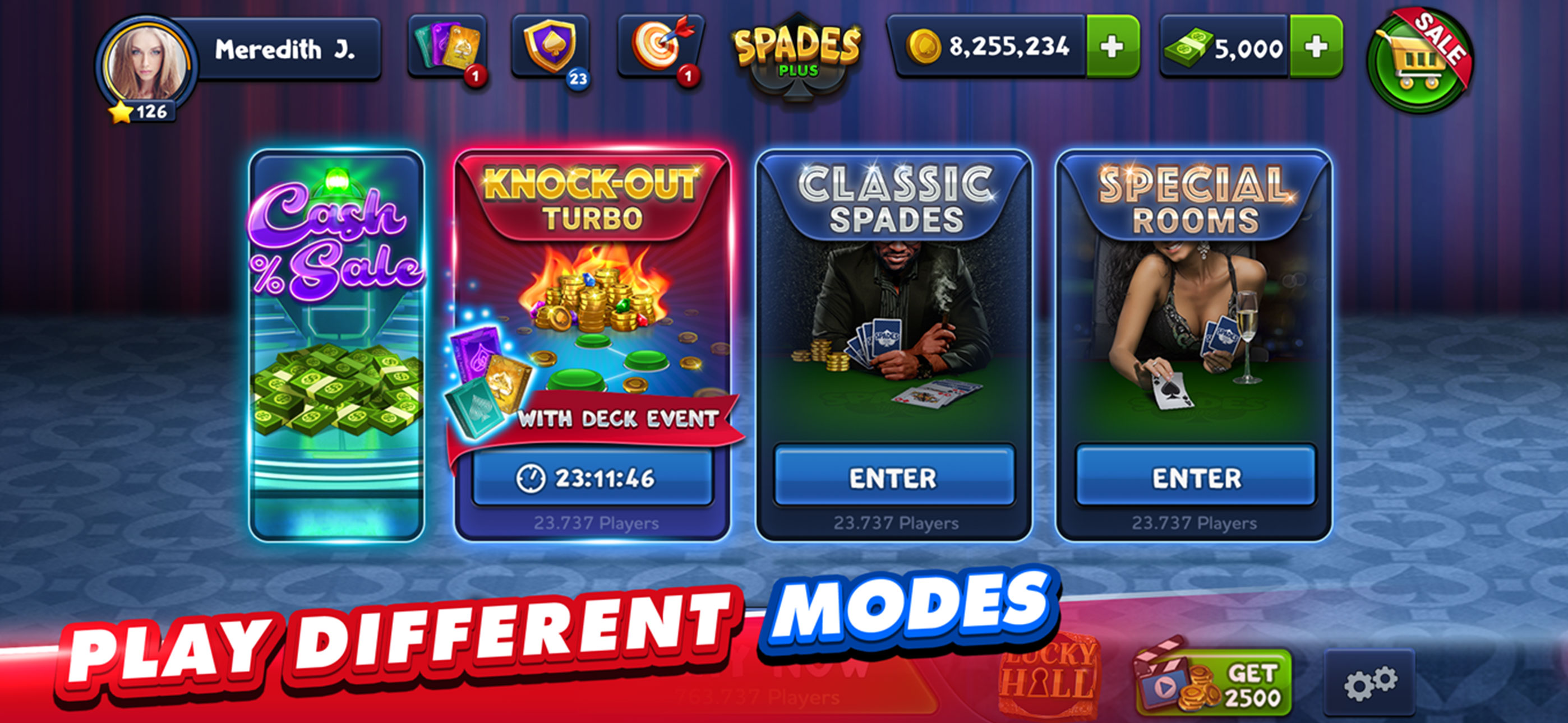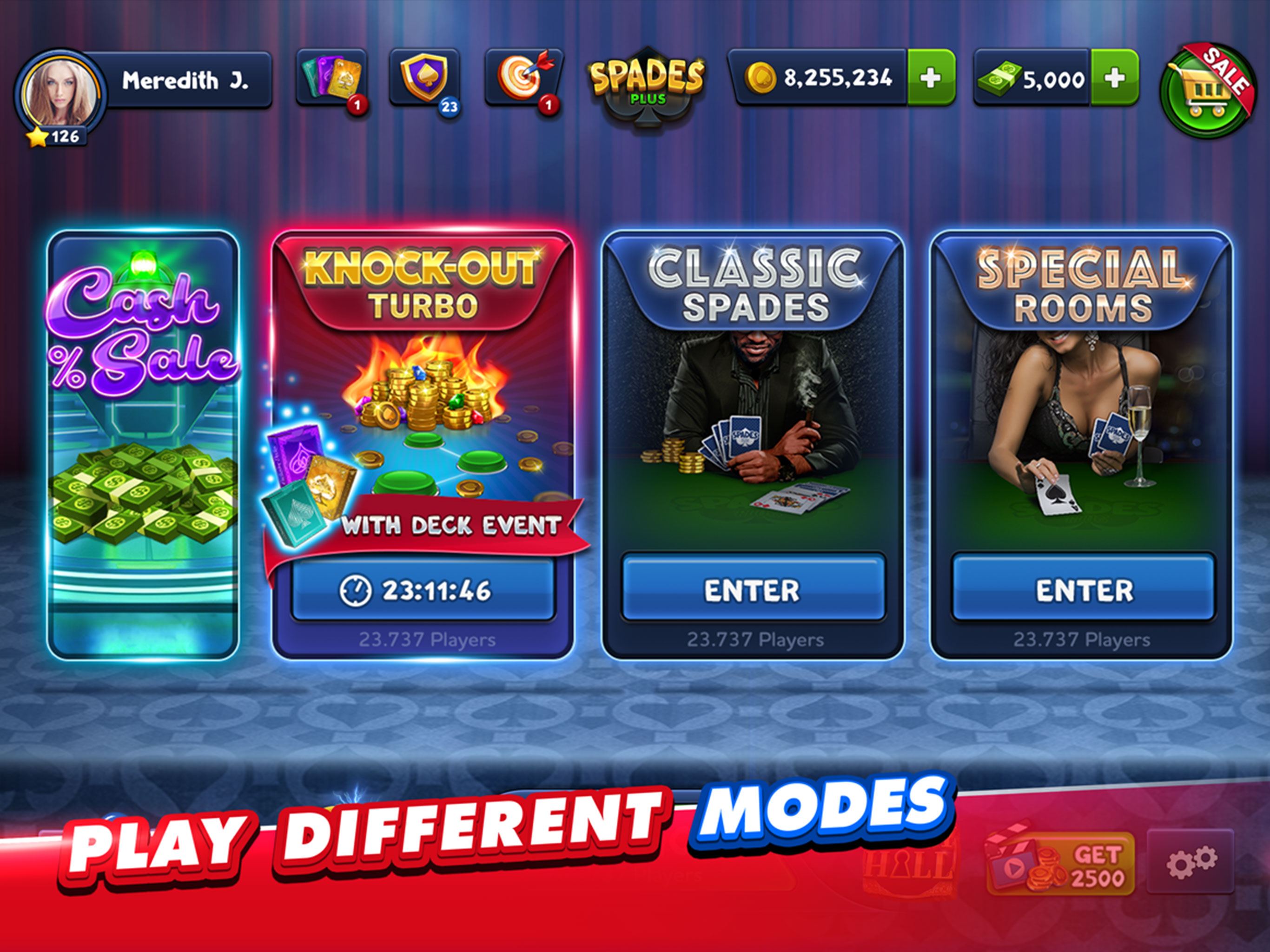 Now playing Spades is much better with Tournaments, Knock-Out and many other different modes!