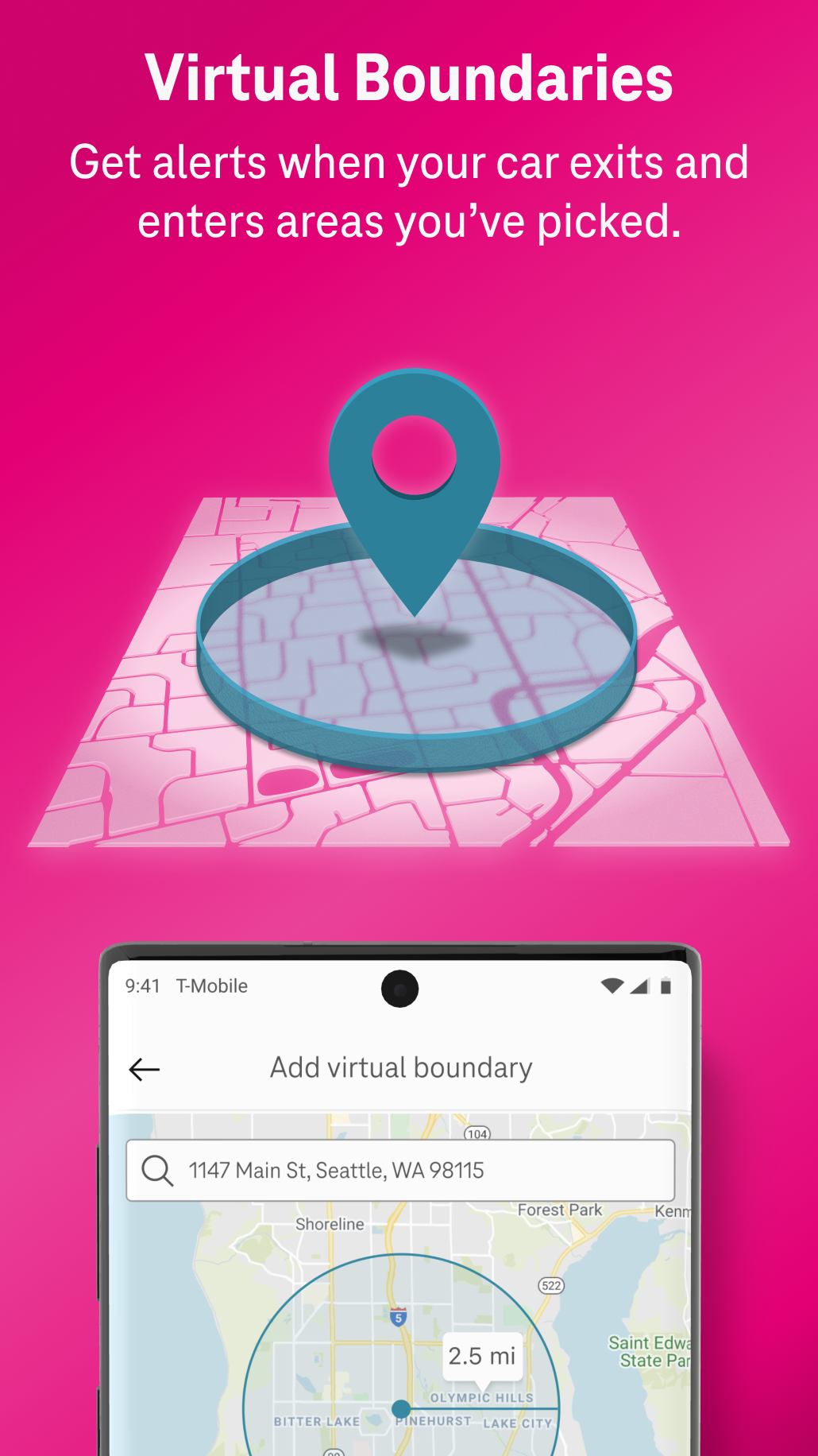 • Create virtual boundaries to get notified when your vehicles arrive and