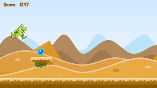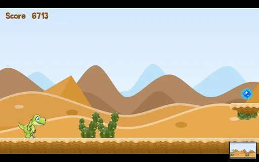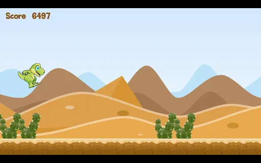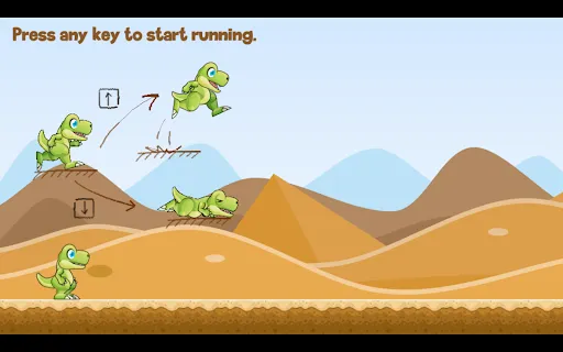 A dinosaur in an endless desert. Jump over cactus and rocks on your way and collect points.