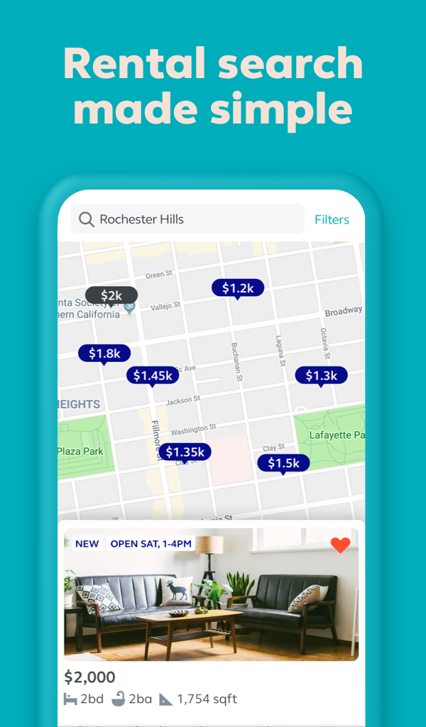 • Flexible Search: Use filters to quickly search rentals by location, price, number of beds and baths, and more. Want to see apts with fireplaces in SF? Looking to lease a dog-friendly loft in LA? We can help.