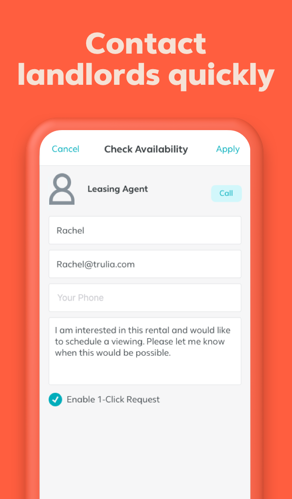 • 1-Click Request: Contact landlords and rental property managers to set up viewings with just one click—it's that easy.