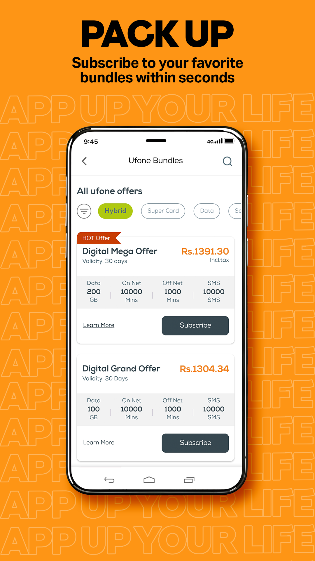 Track mobile data, call, and SMS usage. Monitor PTCL/Flash Fiber usage in real time. Create your own bundle with custom data, minutes, and value-added services. Easily manage users through the Super 5 Offer.