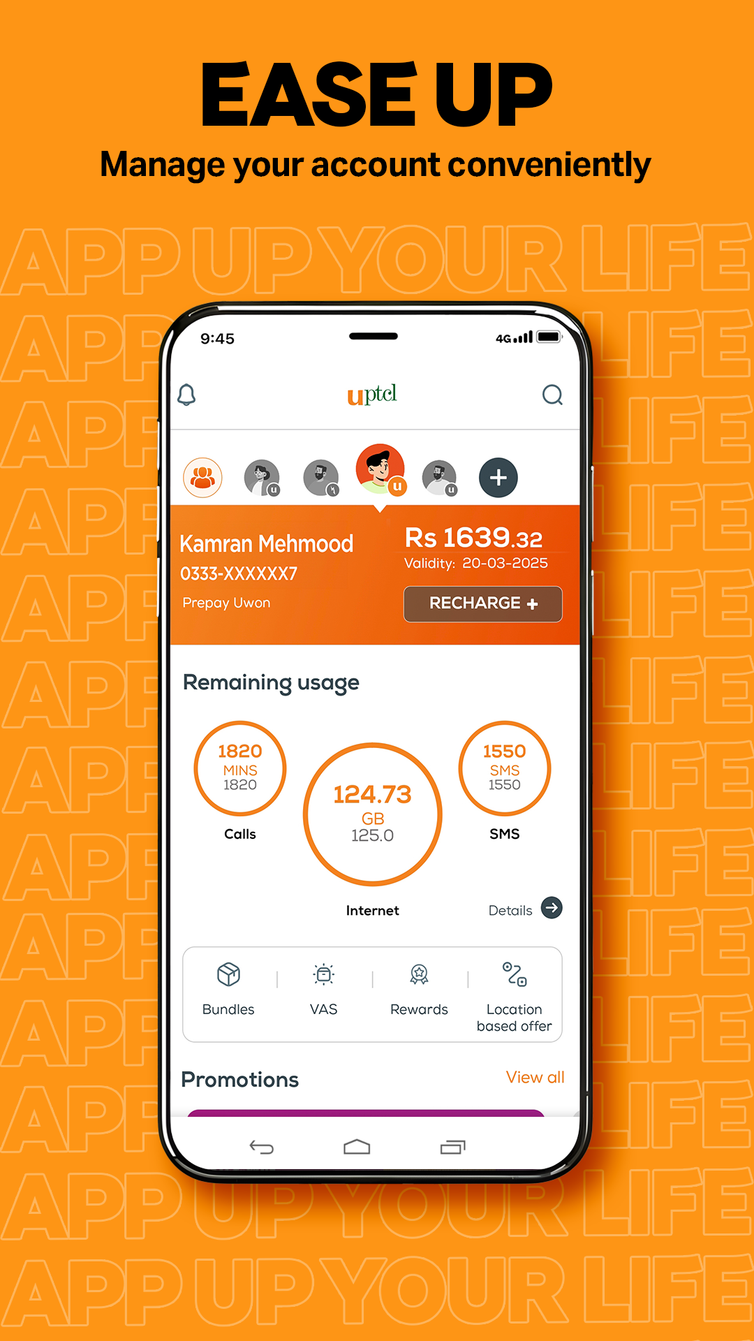 Manage both Ufone and PTCL accounts with a single login. Add up to 4 profiles for family or business use.