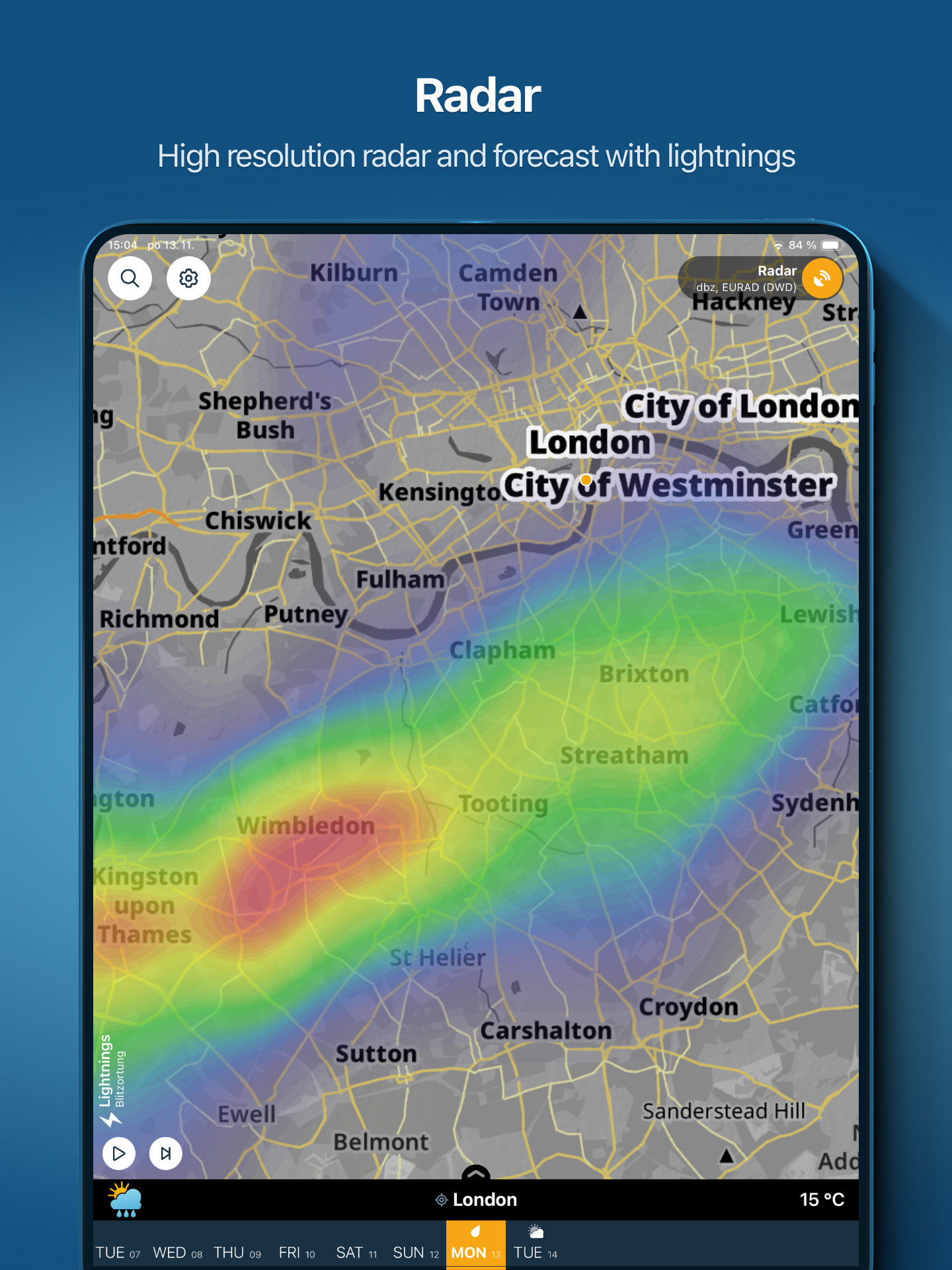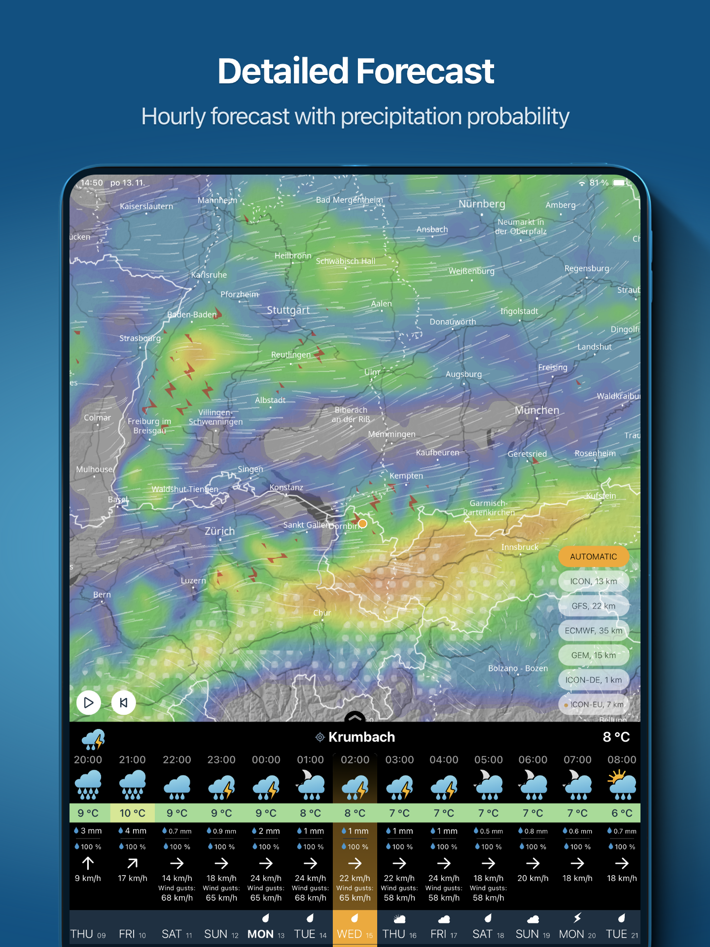 - Hyperlocal 14-days weather forecast with up to hourly resolution