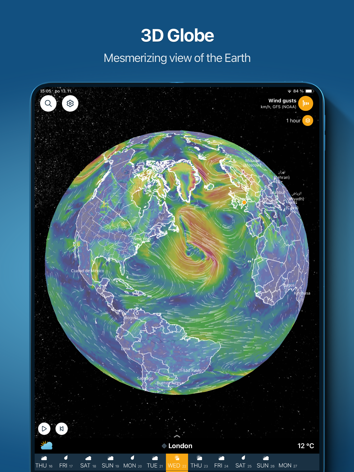 Windy.com is an extraordinary tool for weather forecast visualization. It’s fast, intuitive, detailed and most accurate weather app trusted by professional pilots, paragliders, skydivers, kiters, surfers, boaters, fishermen, storm chasers and weather geeks, and even by governments, army staffs and rescue teams. Whether you are tracking a tropical storm or potential severe weather, planning a trip, pursuing your favourite outdoor sport, or you just need to know if it will rain this weekend, Windy provides you with the most up-to-date weather forecast around. The uniqueness of Windy lies in the fact that it brings you better quality information than the other weather apps’ pro-features, while our product is absolutely free and even without ads. Powerful, smooth and fluid presentation makes weather forecasting a real pleasure! All forecast models at once Windy brings you all the world’s leading weather forecasting models: global ECMWF, GFS and ICON plus local NEMS, AROME, UKV, ICON EU and ICON-D2 (for Europe). Furthermore NAM and HRRR (for the USA) and ACCESS (for Australia). 51 weather maps From wind, rain, temperature and pressure to swell or CAPE index, with Windy you will have all convenient weather maps just at your fingertips. Satellite & Doppler radar Global satellite composite is created from NOAA, EUMETSAT, and Himawari. The image frequency is 5-15 minutes based on area. Doppler radar covers large parts of Europe, America, Asia, and Australia. Point of interests Windy lets you display observed wind and temperature, forecasted weather, airports around the World, collection of 55 000 weather webcams and 1500+ paragliding spots right on the map. Fully customizable Add your favorite weather maps to quick menu, customize color palette on any layer, access advanced options in the settings. All that makes Windy the weather geek’s tool of choice. Features and data sources ✅ All leading weather forecast models: ECMWF, GFS by NOAA, ICON and more ✅ Several local weather models NEMS, ICON EU and ICON-D2, AROME, NAM, HRRR, ACCESS ✅ High-Res satellite composite ✅ Forecast model comparison ✅ 51 global weather maps ✅ Weather radar for many world locations ✅ 16 altitude levels from the surface to 13.5km/FL450 ✅ Metric or imperial units ✅ Detailed weather forecast for any location (temperature, rain and snow accumulation, wind speed, wind gusts and wind direction) ✅ Detailed Airgram and Meteogram ✅ Meteogram: temperature and dew point, wind speed and wind gusts, pressure, precipitation, altitude cloud cover ✅ Altitude and Time zone info, Sunrise and Sunset time for any location ✅ Customizable list of Favorite spots (with the option to create mobile or e-mail alerts for upcoming weather conditions) ✅ Nearby weather stations (Real-time observed weather - Reported wind direction, wind speed and temperature) ✅ 50k+ Airports searchable by ICAO and IATA, including runway info, decoded & raw METARs, TAF and NOTAMs ✅ 1500+ Paragliding spots ✅ Detailed wind and wave forecast for any kiting or surfing spot ✅ 55K Weather webcams ✅ Tide forecast ✅ Topographic maps by Mapy.cz and Satellite imagery by Here Maps ✅ English + 40 other world languages ✅ Now with Wear OS application (Forecast, Radar, Tiles and Complication) ...and many more Get in touch 💬 Join us at community.windy.com to discuss weather related topics or suggest new features. Follow us on social media • Facebook: facebook.com/windyforecast • Twitter: twitter.com/windycom • YouTube: youtube.com • Instagram: instagram.com/windy_forecast