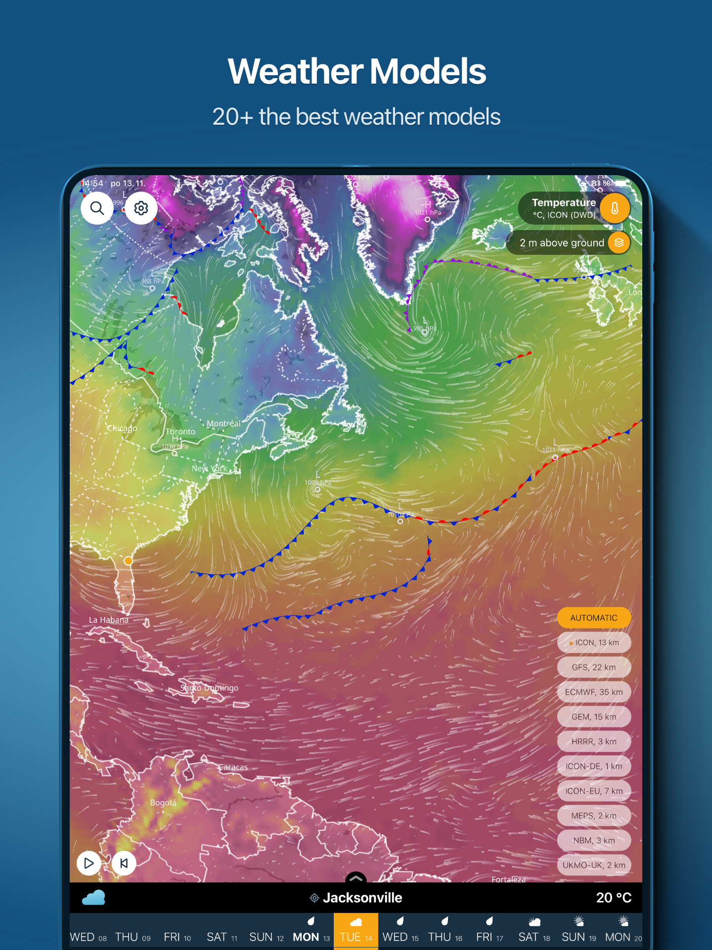 Ventusky All-in-One Weather is a fusion of 20+ of the world's best models, live radar, satellite and 40,000+ webcams, delivering industry-leading accuracy for planning everything from morning jogs to transatlantic flights.