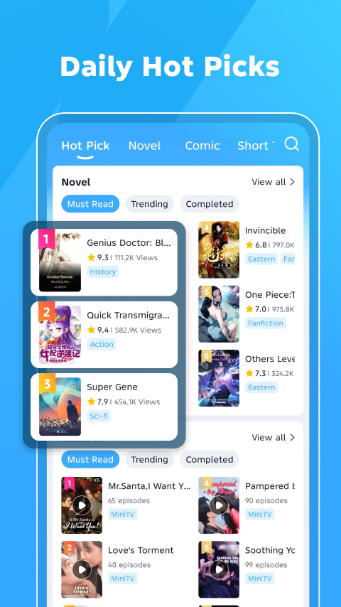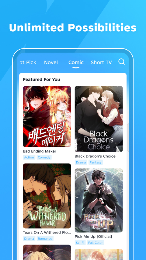 Dive into endless stories! Read novels, binge comics & watch short dramas.