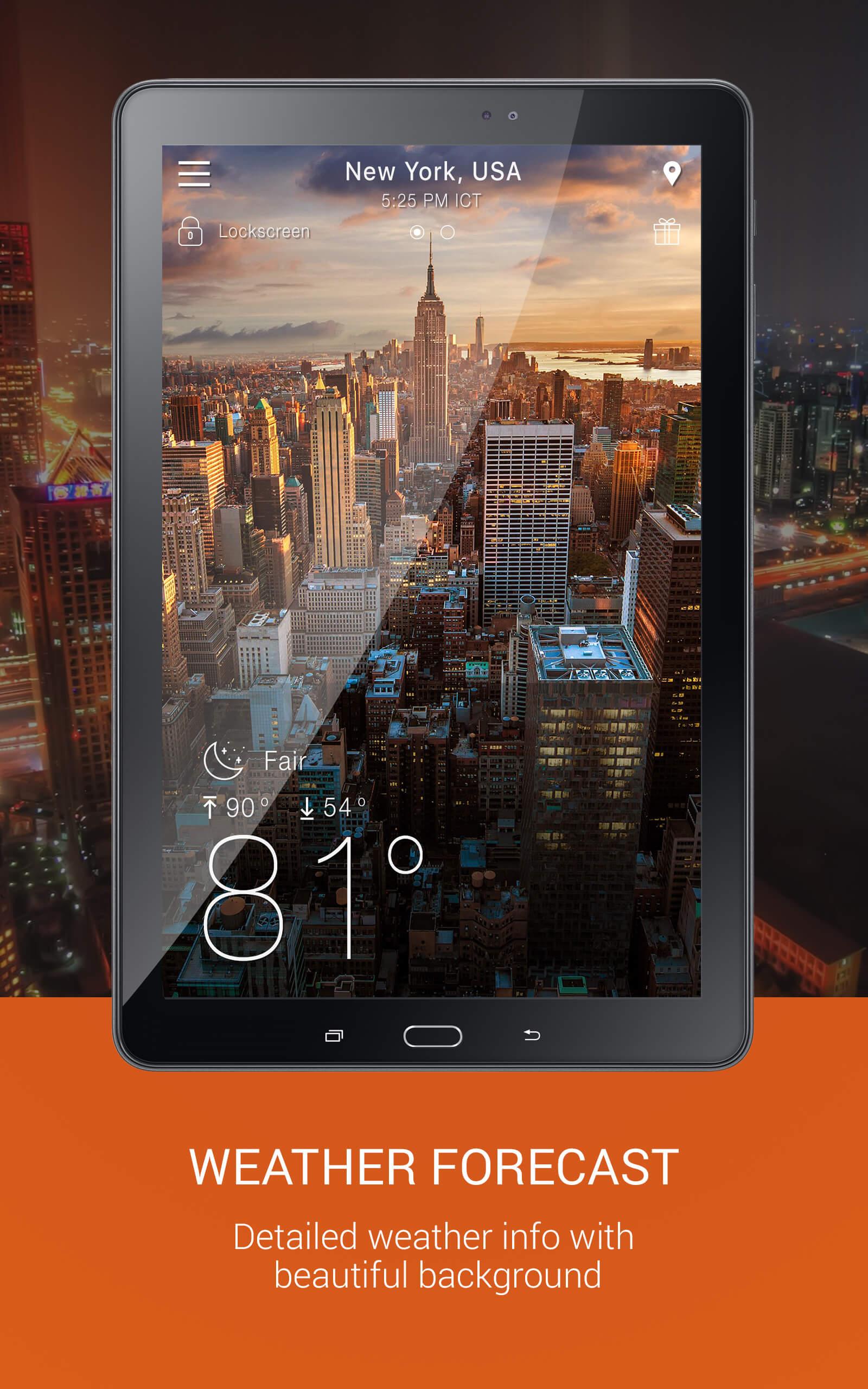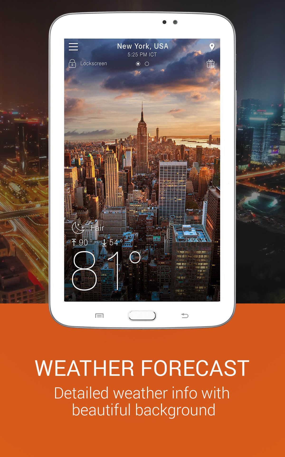 - Lock screen with info: temps, rain, clouds & clock widget weather