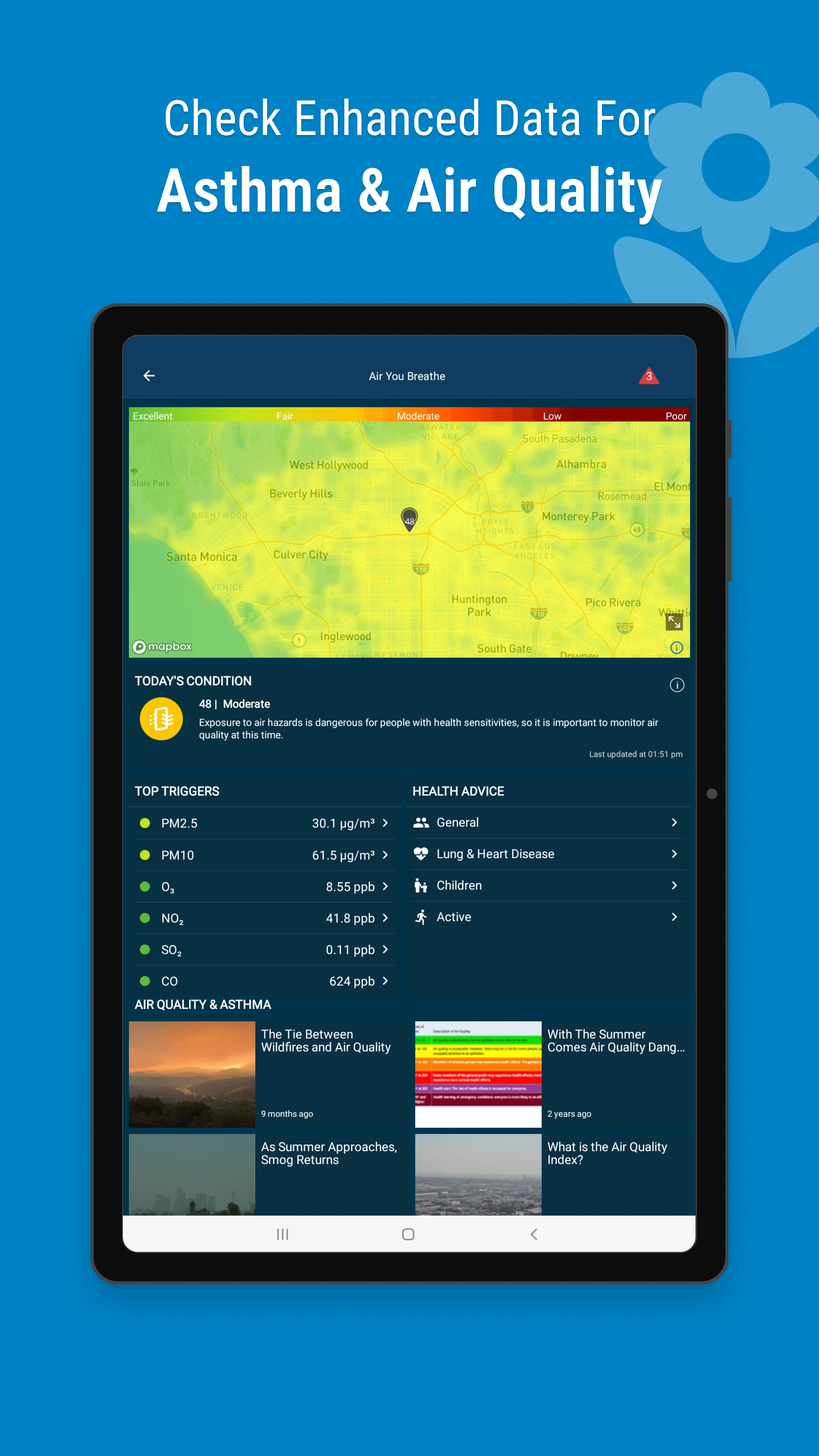• Air You Breathe Section with Air quality information, including top allergy triggers around you