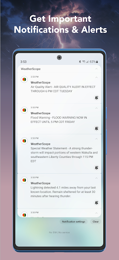 Lightning Alerts: Stay safe during thunderstorms with instant alerts when lightning is detected nearby. WeatherScope ensures you're always aware of dangerous conditions.