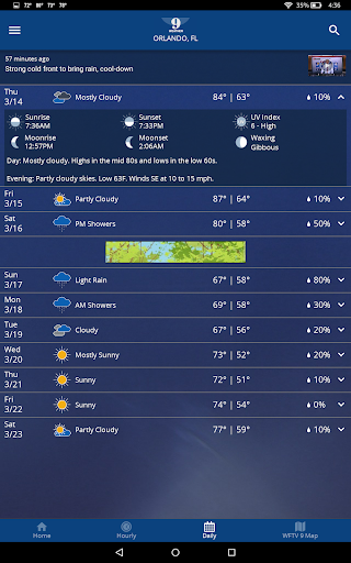 This free, 24/7 app is constantly updated with the latest storm and forecast information for the Orlando and Central Florida areas. Plus watch live coverage of Eyewitness News and the WFTV meteorologists in Severe Weather Center 9 right on your mobile device.