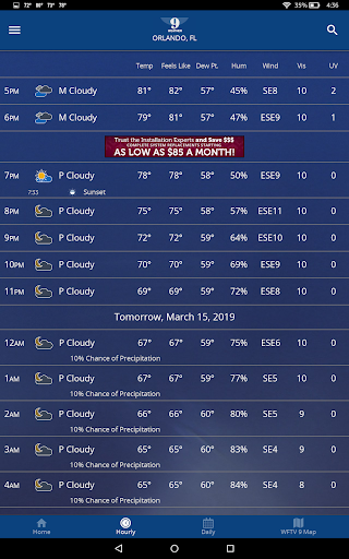 By using the app’s built-in interactive radar, you can zoom down to your neighborhood, including Brevard, Flagler, Lake, Marion, Orange, Osceola, Polk, Seminole, Sumter and Volusia counties, or zoom out to check radar anywhere in the country. Location based storm alerts will direct you to the latest severe weather warnings.