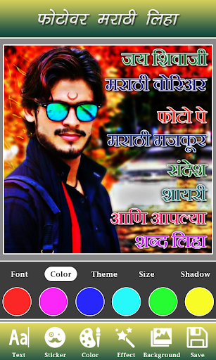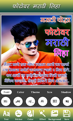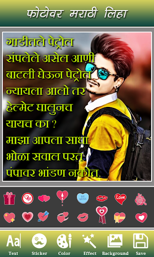 Marathi Text on Photo app allows you to write Marathi text on pictures. Write your own shayari, poetry, message, status etc on pictures and share them with your friends.