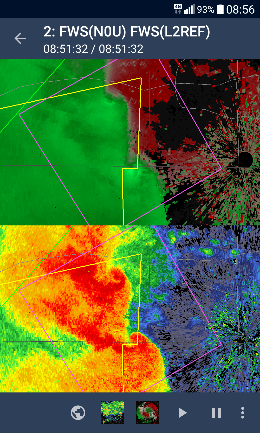 - OpenGL based Nexrad radar interface with numerous options. Level 2 in the lowest tilt for base reflectivity/velocity is also available. 2 pane and 4 pane version also available in MISC tab.