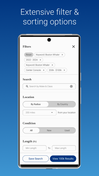 Easily browse, search and sort yachts by price, make, size, location and more.