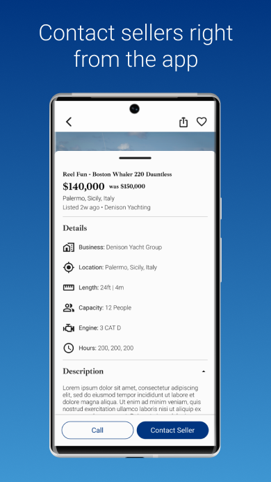 Found the perfect yacht? Contact the seller directly from the app.