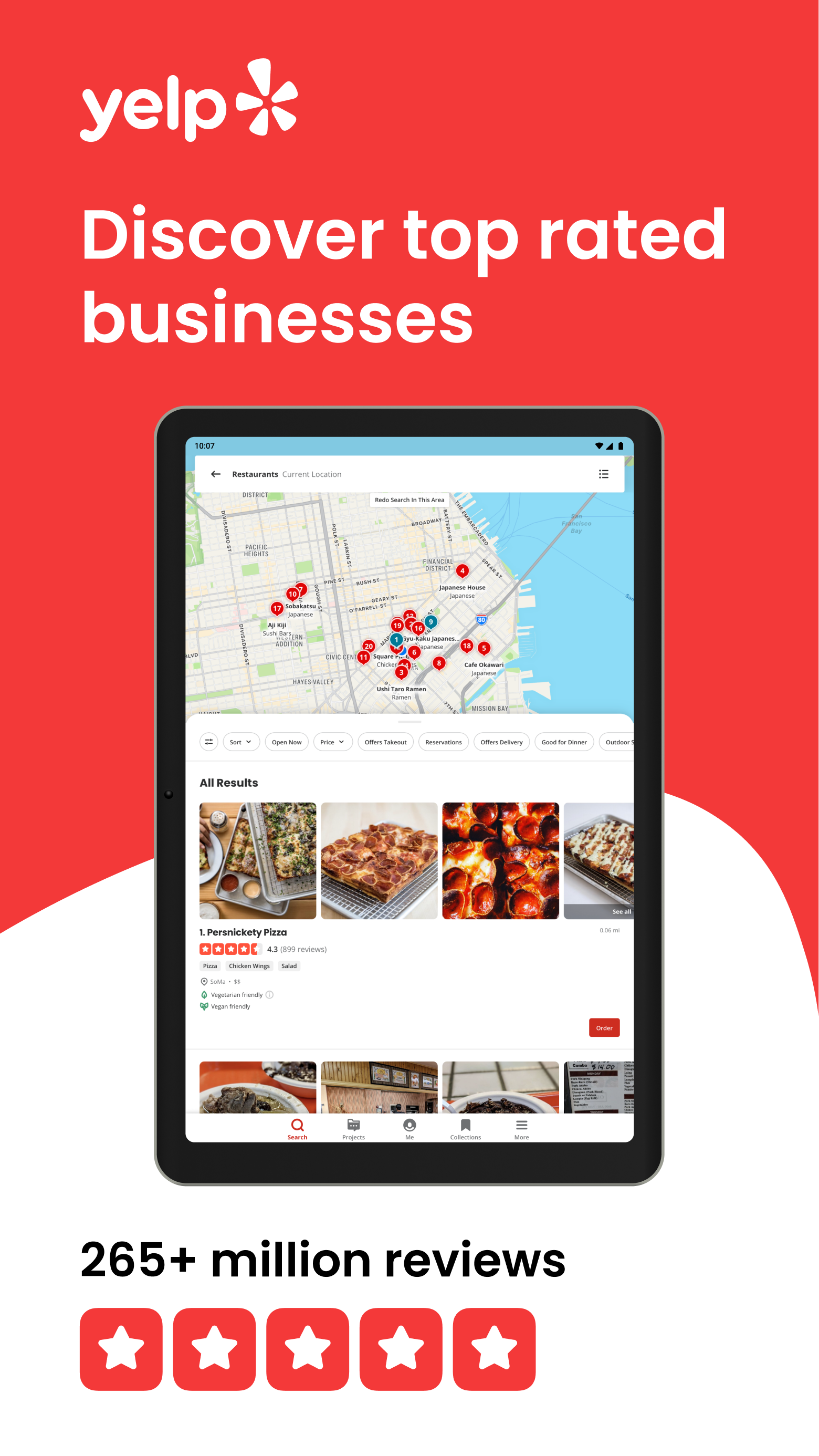 Yelp connects people with great local businesses! The one-stop travel, local, and food delivery app to discover nearby favorites. Whether you’re looking for restaurant reservations, to order food, a pet sitter, home services, auto repairs, local businesses, reviews, or something else - Yelp is here!