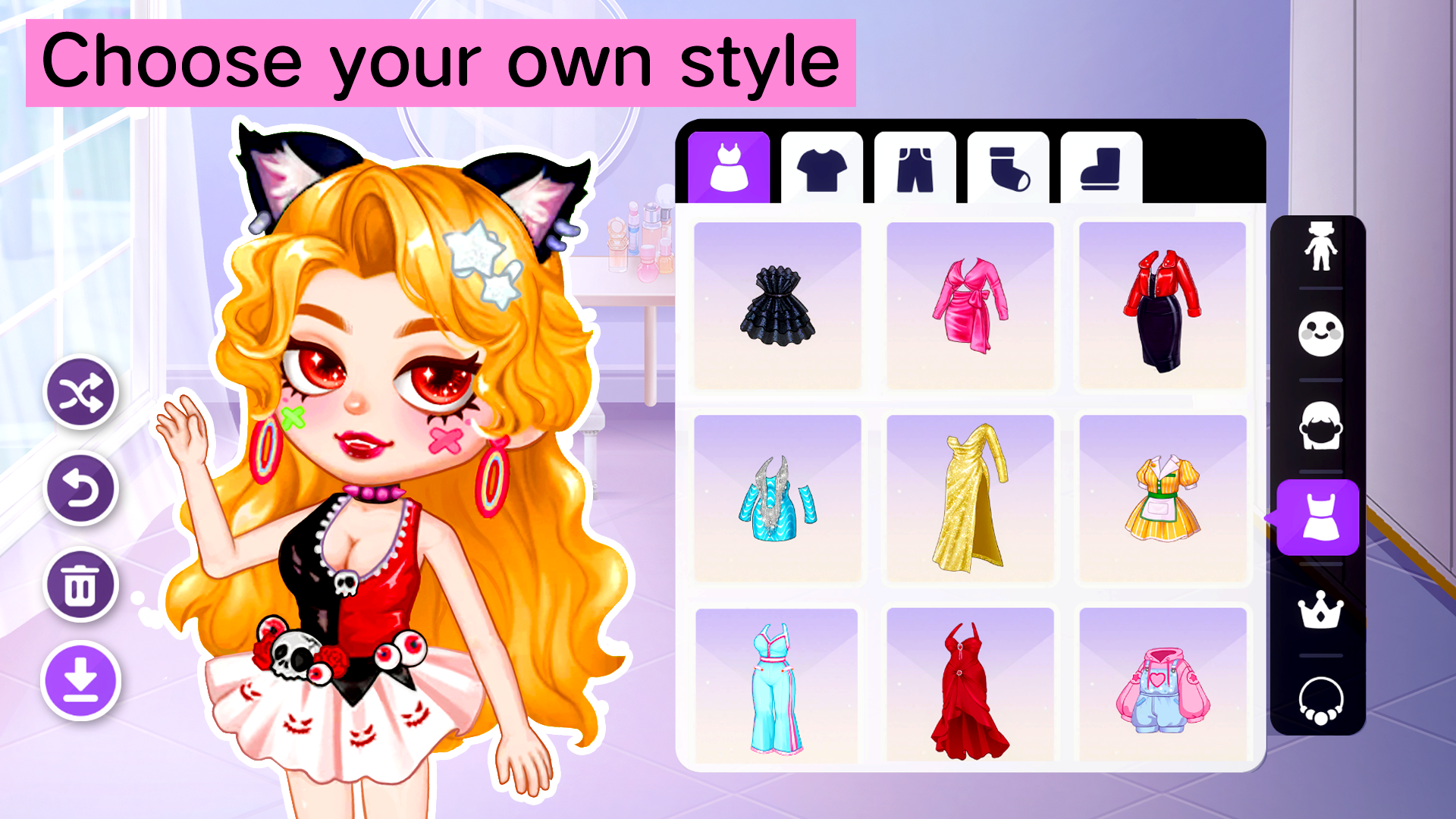 Bring your ideas to life with a detailed character editor. Choose hairstyles, fashion, accessories, and even fantasy traits like wings or vibrant hair colors. From pop stars to dragons, the possibilities are endless.
