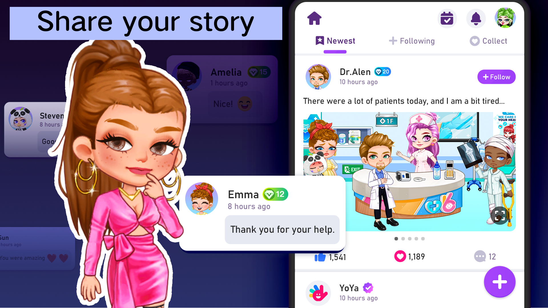 Tell your own stories with expressive animations, diverse backdrops, and interactive props. Whether you’re imagining a fairytale forest, a space station adventure, or a slice-of-life story, YoYa Time provides the tools to bring your vision to life.