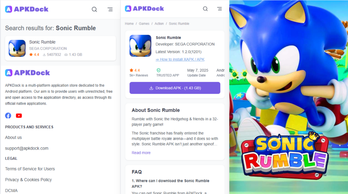 Visit APKDock and search for Sonic Rumble APK. Make sure you’re downloading the version from a reliable publisher to avoid unsafe files.